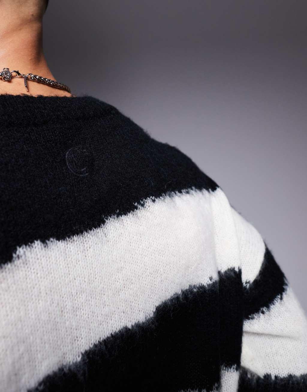 HUGO BLUE Somi oversized knitted striped sweater in black and white