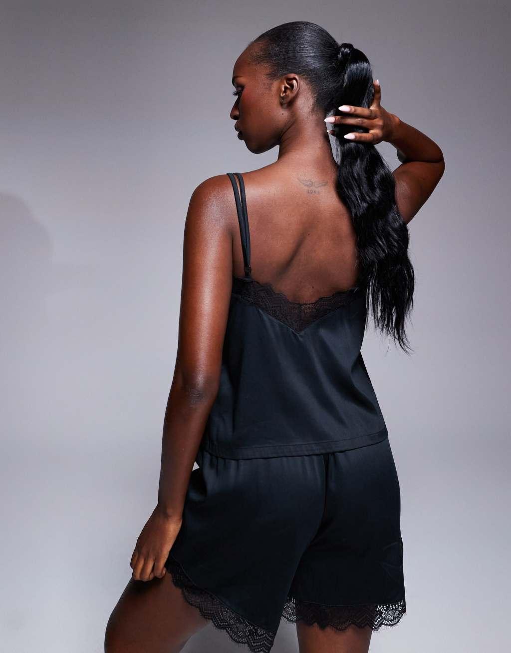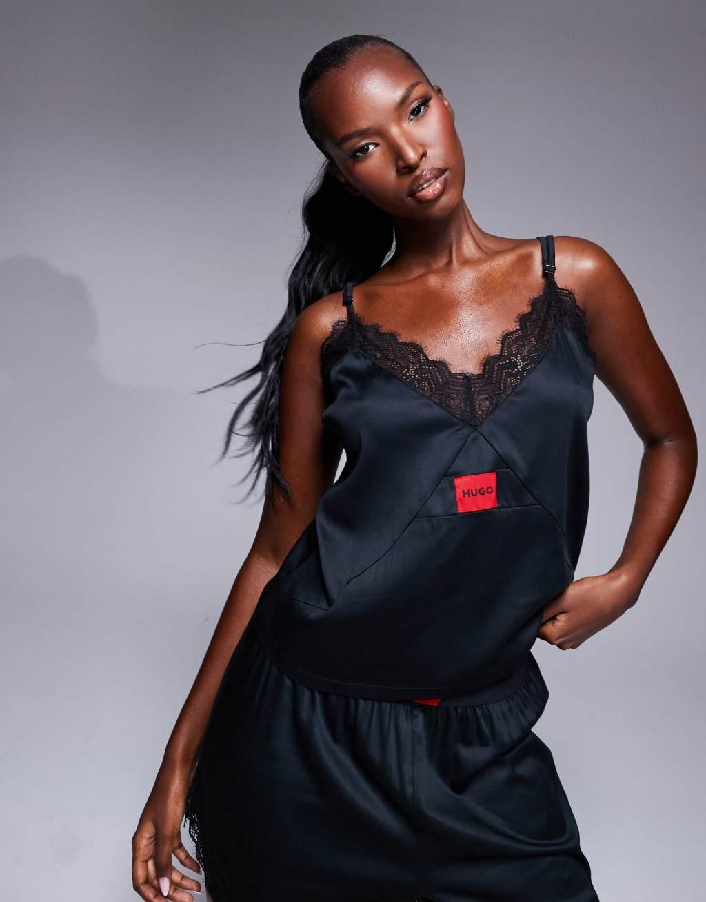HUGO Bodywear satin lace trim pajama cami top in black - part of a set