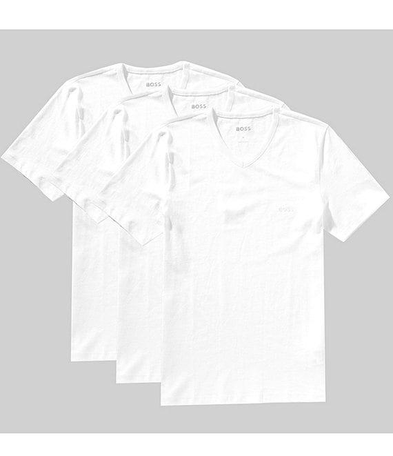From Hugo Boss, this 3-pack features: Regular fit V-neckline Short sleeves Logo embroidery Pullover construction Tag-free comfort Natural pure cotton Machine wash/tumble dry Imported.