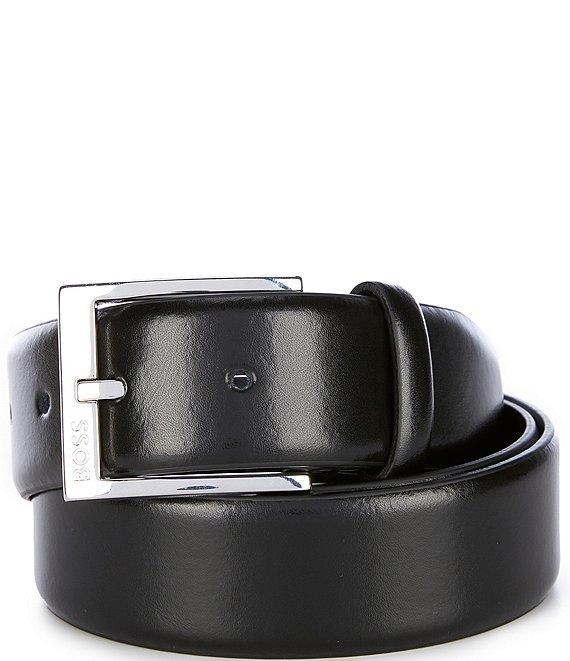 From Hugo Boss, this belt features: Engraved logo on closure Width: 3.5 cm (1.4 inches) Polished gunmetal hardware Fully lined Cow leather Spot clean Imported.