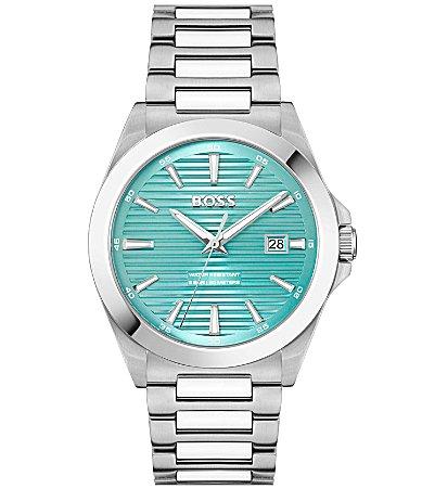 Bold and sporty aesthetics come to the fore with Strike, a three-hand watch with date function that captures the go-getting mindset of every Boss in a cool and confident design. A sunray dial with horizontal groove texture, offered in a wide choice of colors, is the focal point of this timepiece.