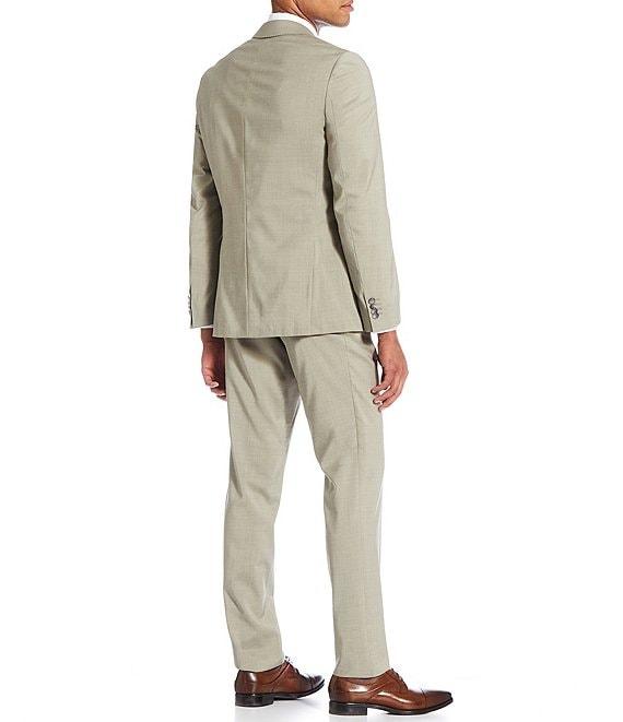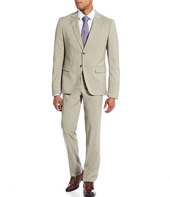 From Hugo Boss, this 2-piece suit features: Jacket: Notch lapel Long sleeves Side vent Melange pattern Flap pockets Fully lined 2 button closure Wool/elastane Dry clean Pants: Flat front Melange pattern Front button/zip closure Wool/elastane Dry clean Imported.