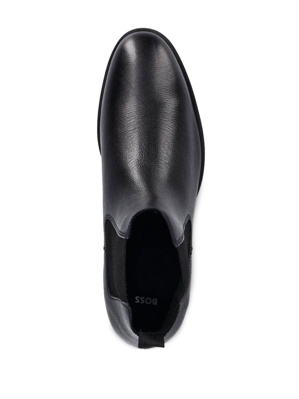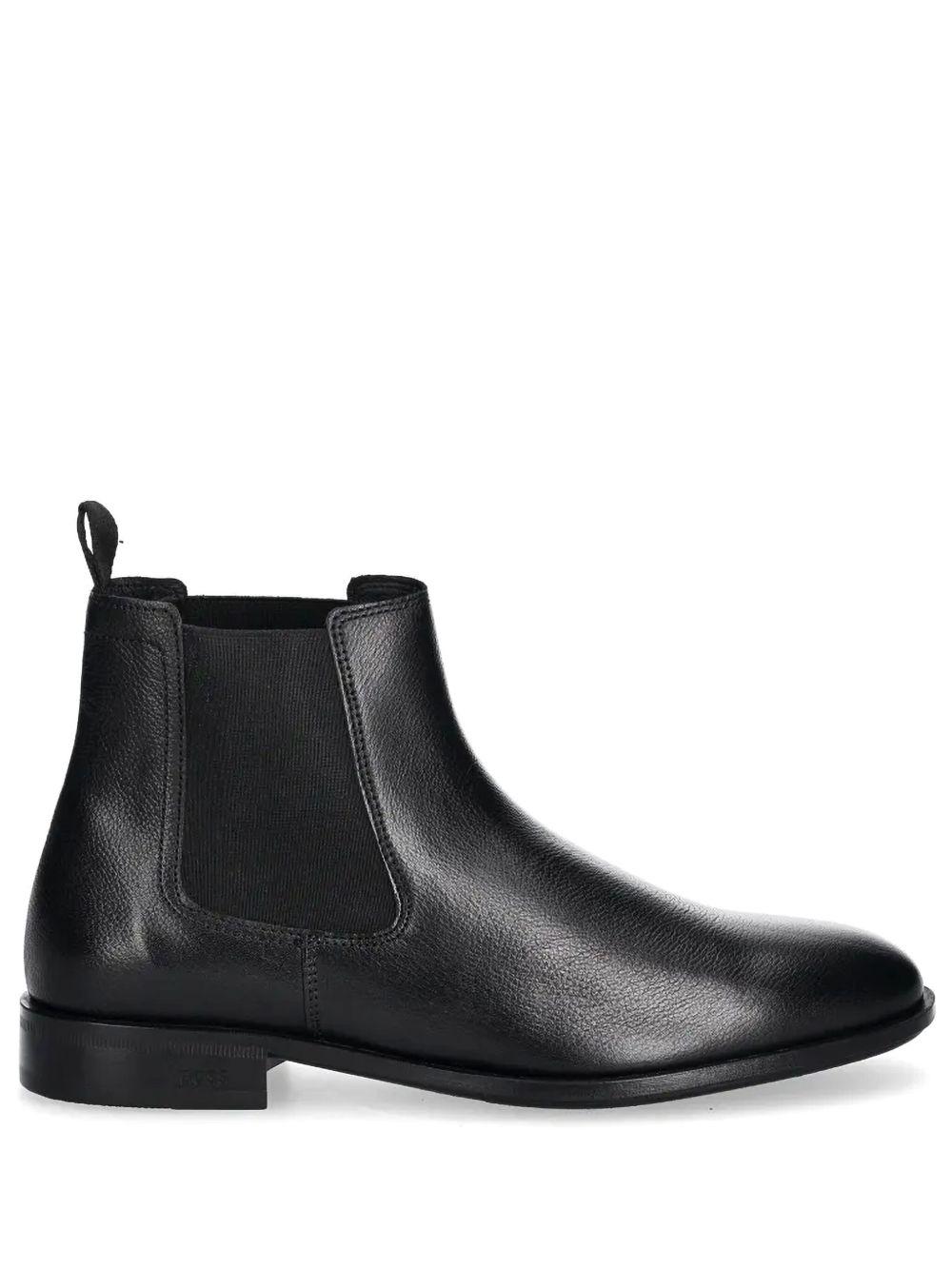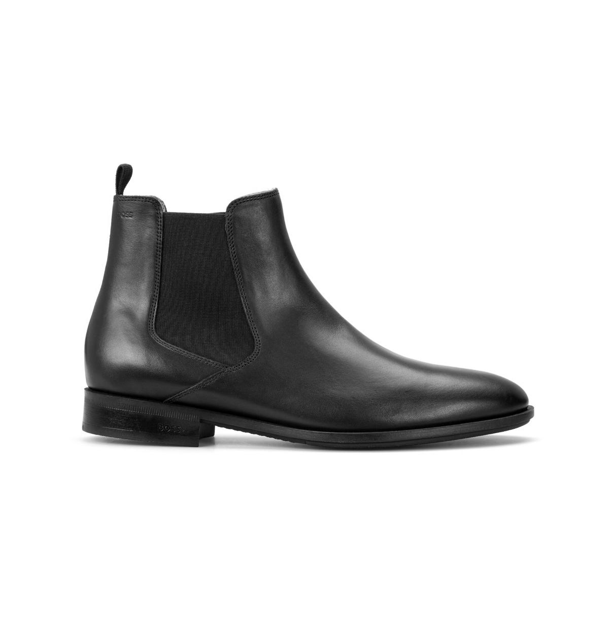 Shop Hugo Boss Tayil Mens Leather Chelsea Boots In Black from 800+ stores, starting at $100. Clean lines and minimal detailing bring wardrobe-staple versatility to a Chelsea boot crafted from polished black leather with tonal goring blending into the sides. Pair it with any casual or going-out look for easy styling and effortless style. Pull-on style with elastic gore insets Leather upper and lining/synthetic and leather sole Imported
