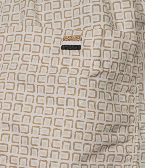 From Hugo Boss, these swim trunks feature: All-over mini pattern Drawstring/elastic waistband with solid cord ends Side pockets Back pocket with logo flag Side slits at the leg hems Logo embroidery 5.1” inseam Pull-on construction Recycled polyester Machine wash/line dry Imported.