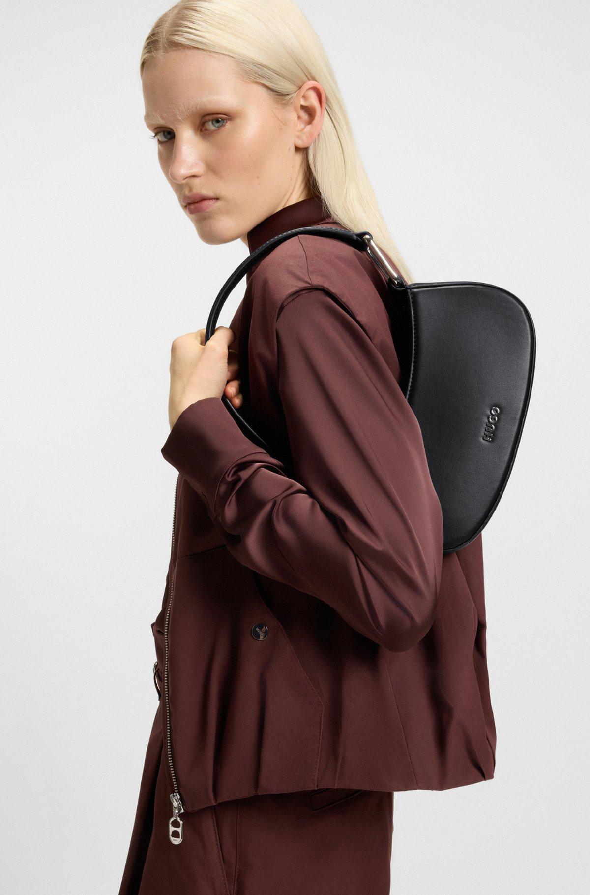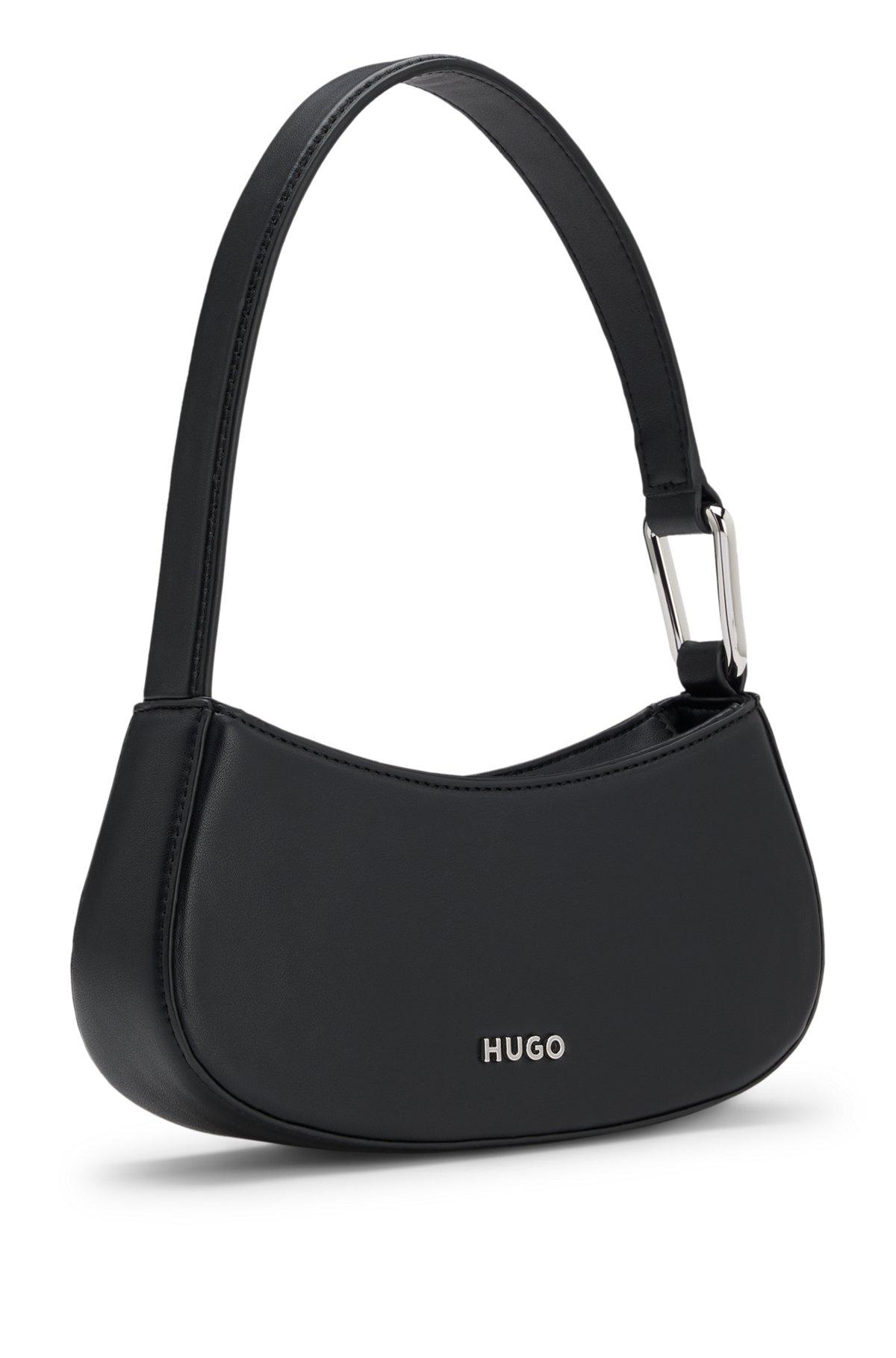 HUGO - Hobo bag in faux leather with logo lettering - Black