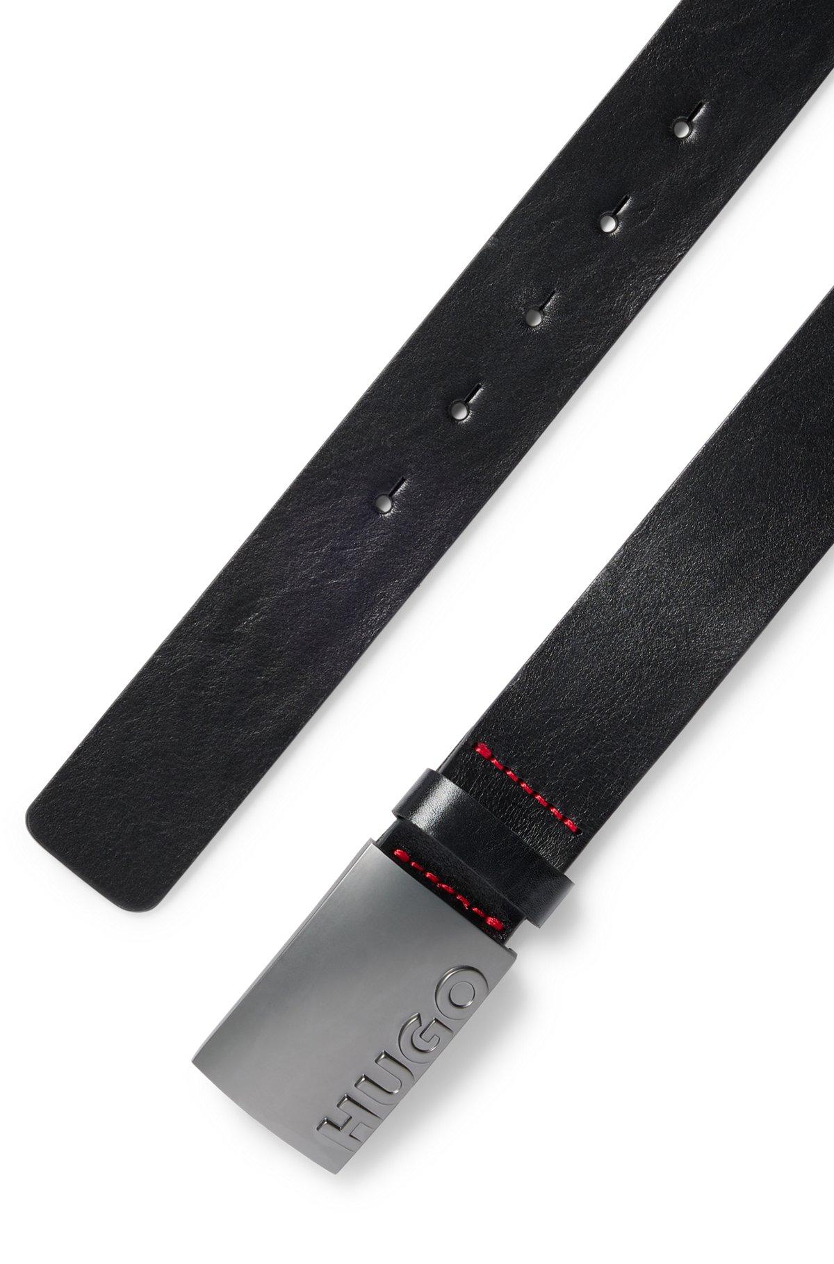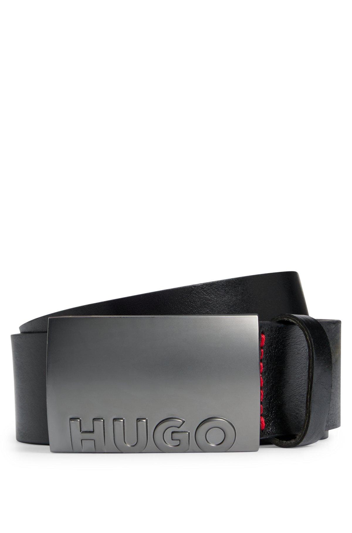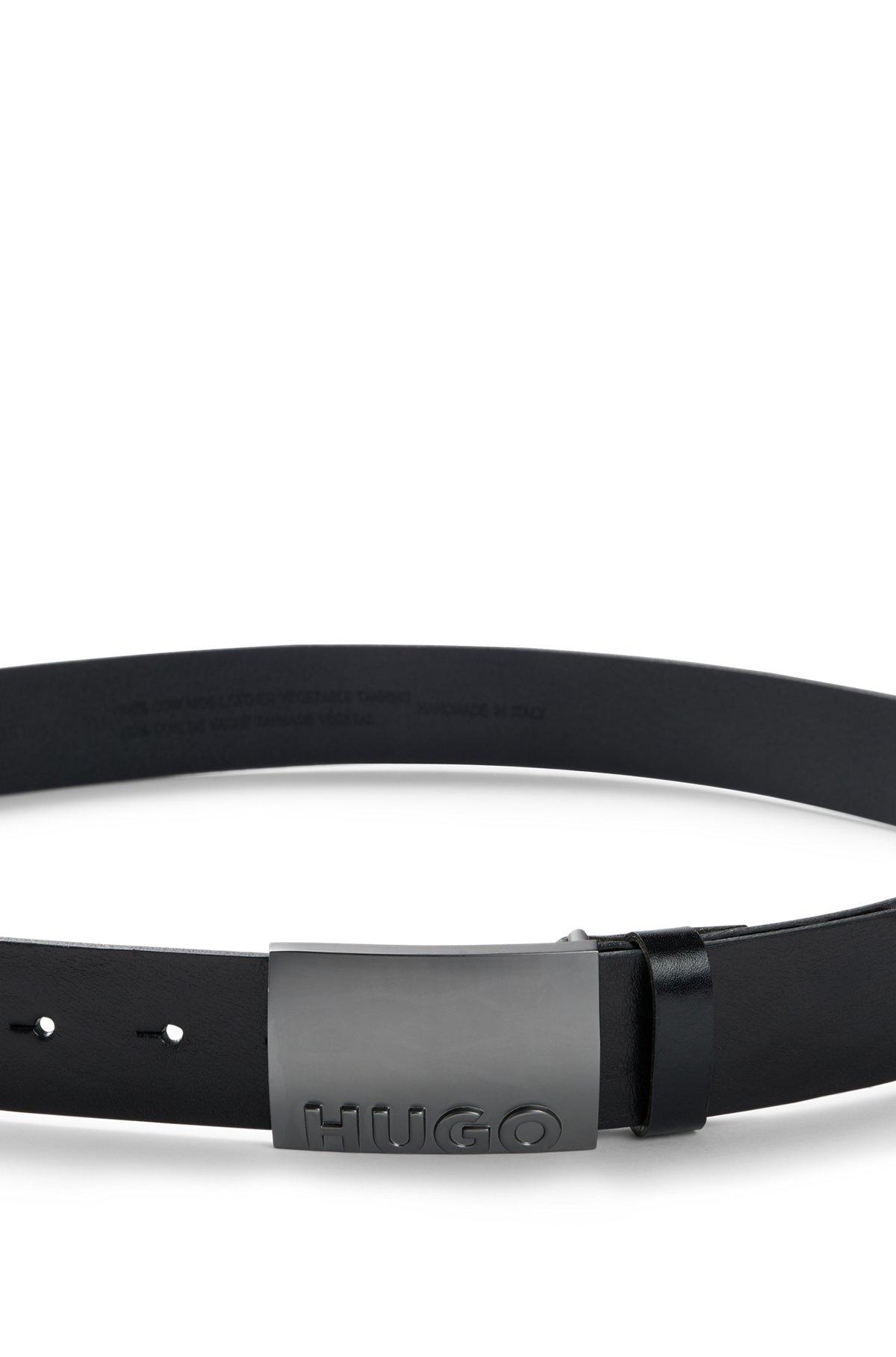 Italian-leather belt with plaque buckle - Black Casual Belts from HUGO for Men for in the official HUGO BOSS Online Store free shipping