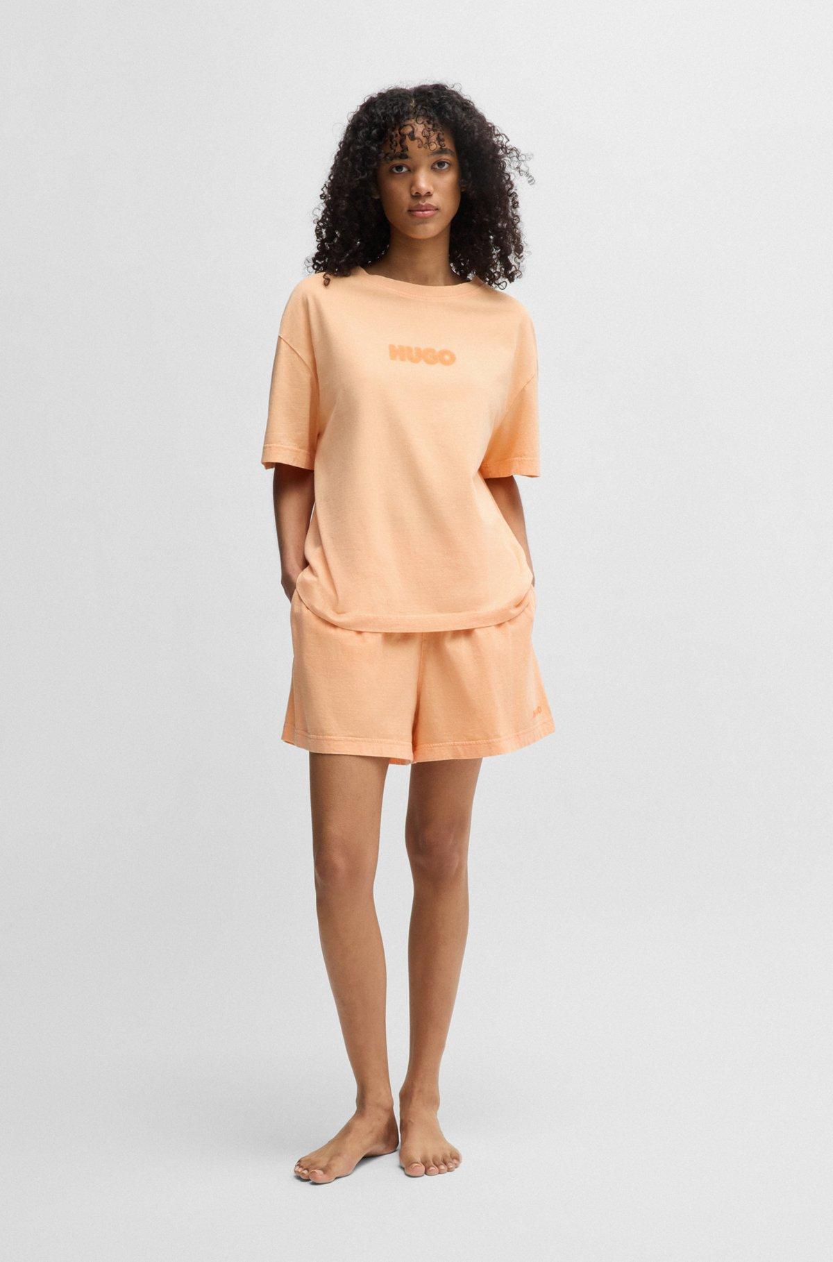 HUGO - Relaxed-fit printed pajamas in cotton with blurred logos - Orange