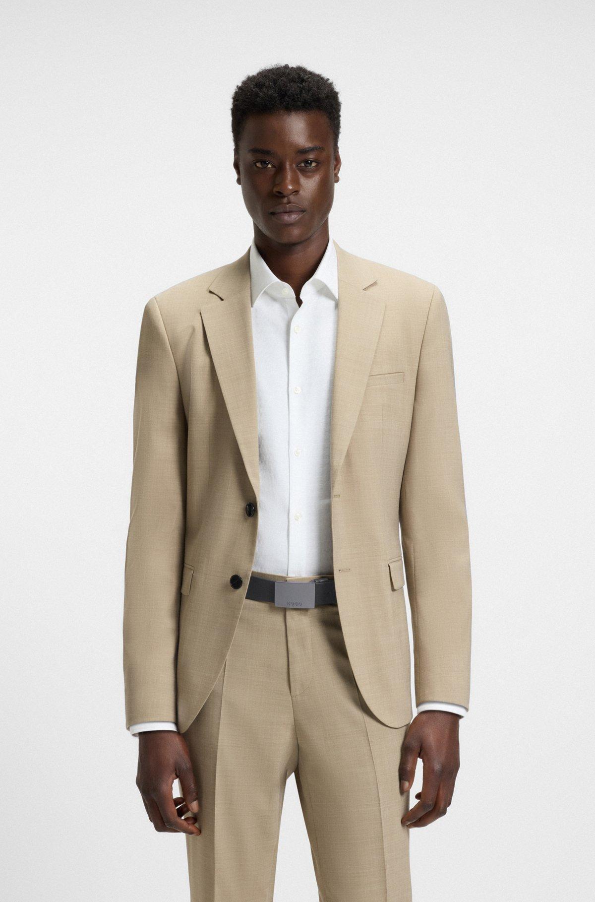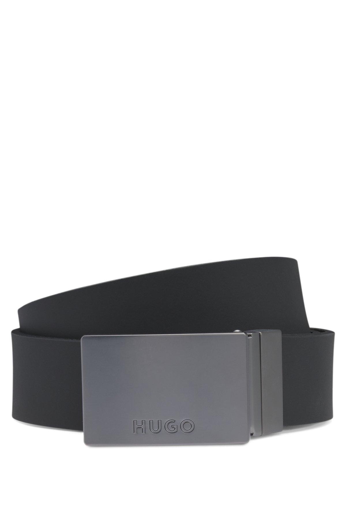 HUGO - Italian-leather belt with brushed logo buckle - Black