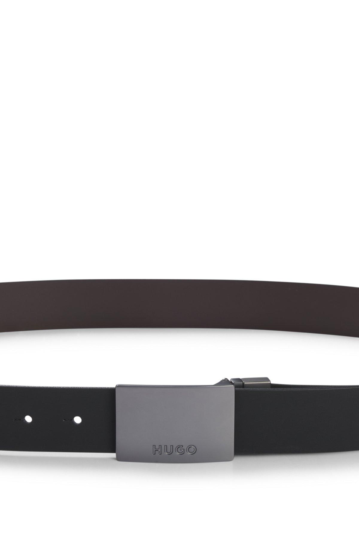 Reversible Italian-leather belt with two buckles - Black Casual Belts from HUGO for Men for in the official HUGO BOSS Online Store free shipping