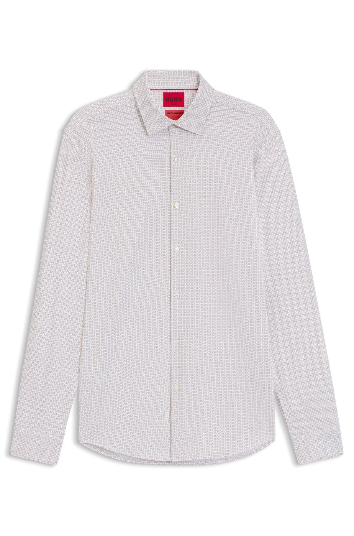 HUGO - Slim-fit shirt in printed performance-stretch jersey - Beige
