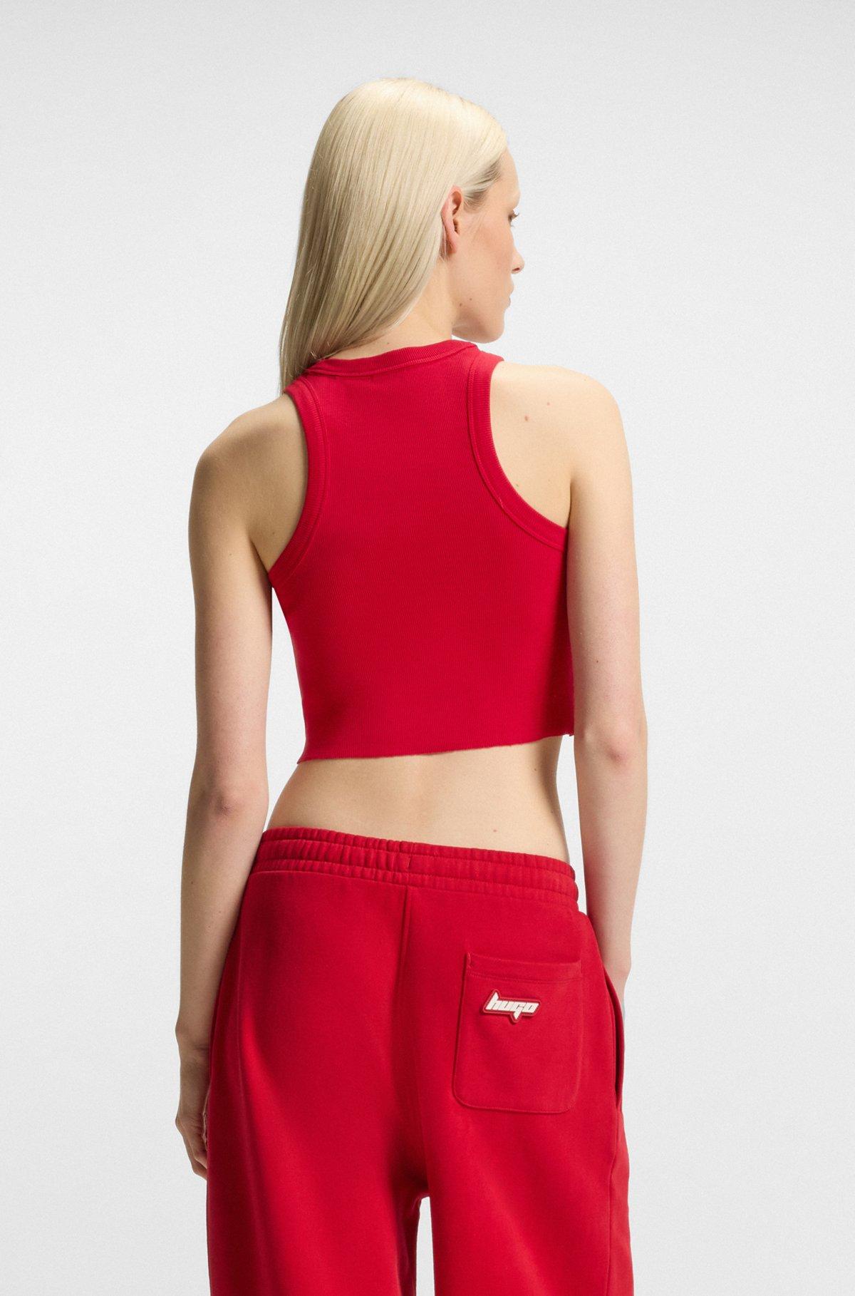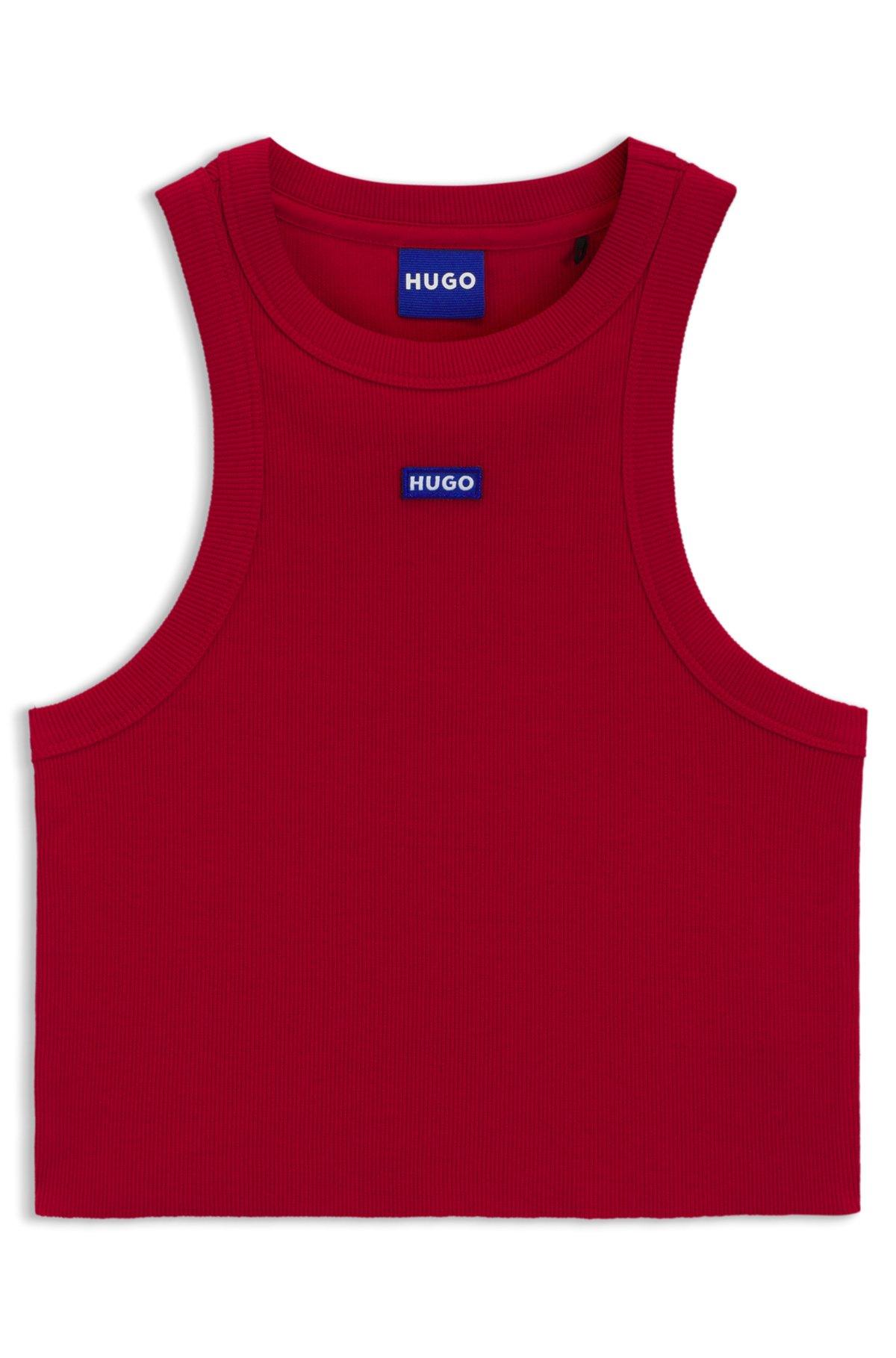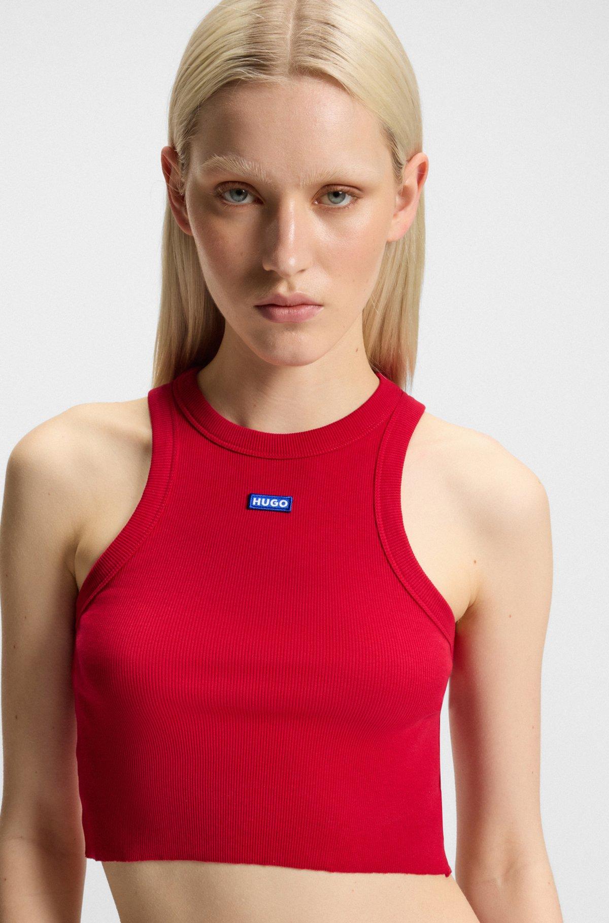 Tank top in ribbed stretch cotton with logo badge - Dark Red Casual Tops from HUGO for Women for in the official HUGO BOSS Online Store free shipping