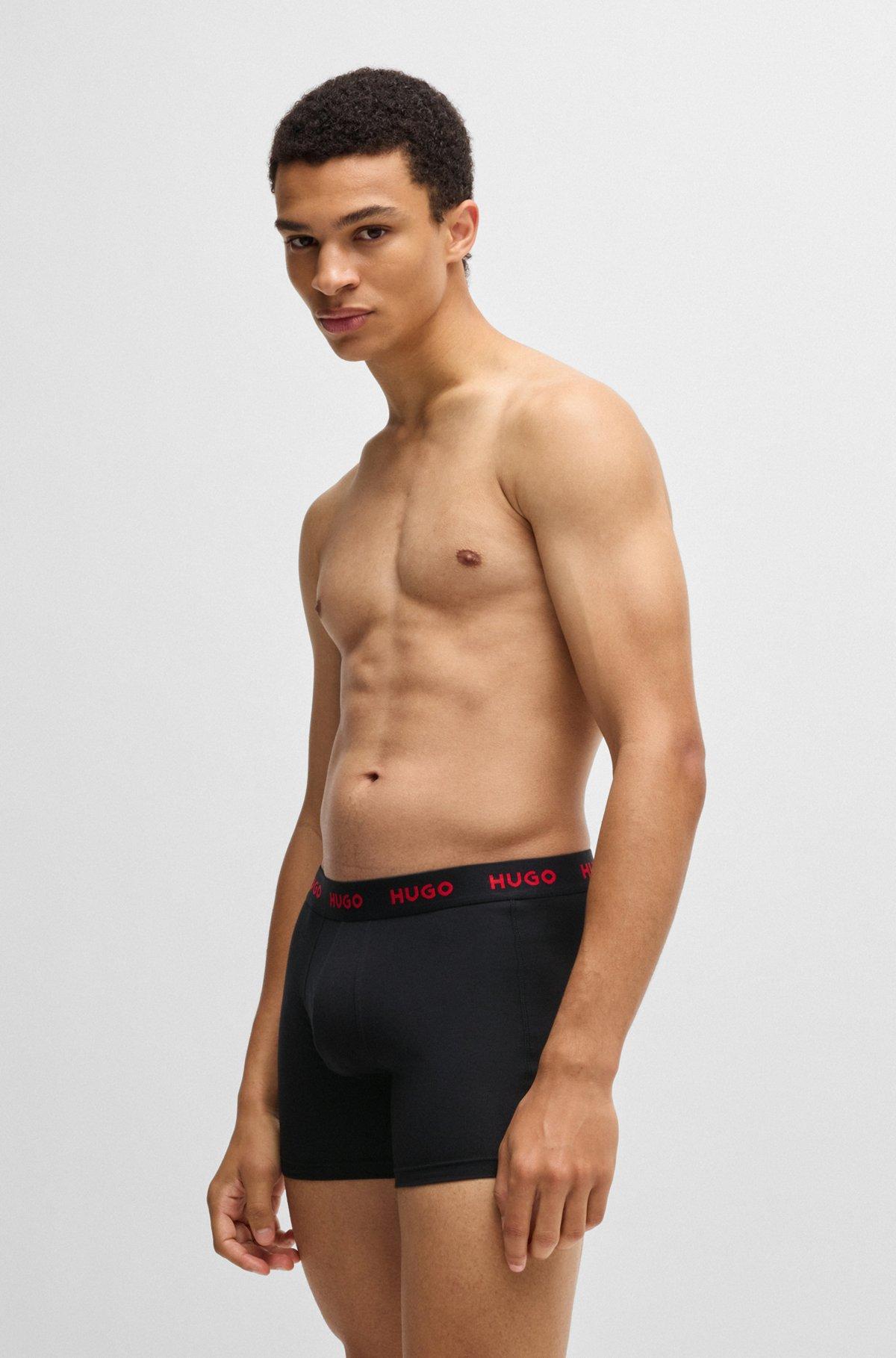 Three-pack of stretch cotton boxer briefs - Patterned Underwear from HUGO for Men for in the official HUGO BOSS Online Store free shipping