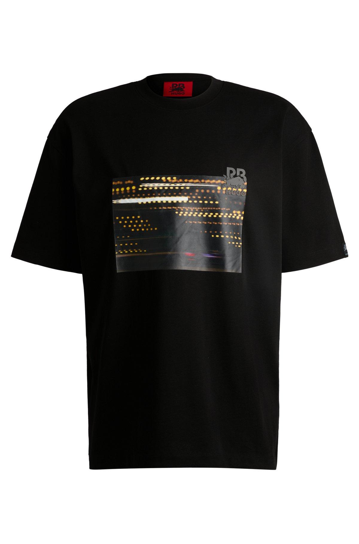 With its oversize fit and statement racing print, this men's HUGO x RB T-shirt adds impact to a casual look. Crafted in soft cotton jersey. Celebrate the thrill of motorsports with this unique product from the high-octane collaboration between HUGO and the Visa Cash App Racing Bulls Formula One™ Team.