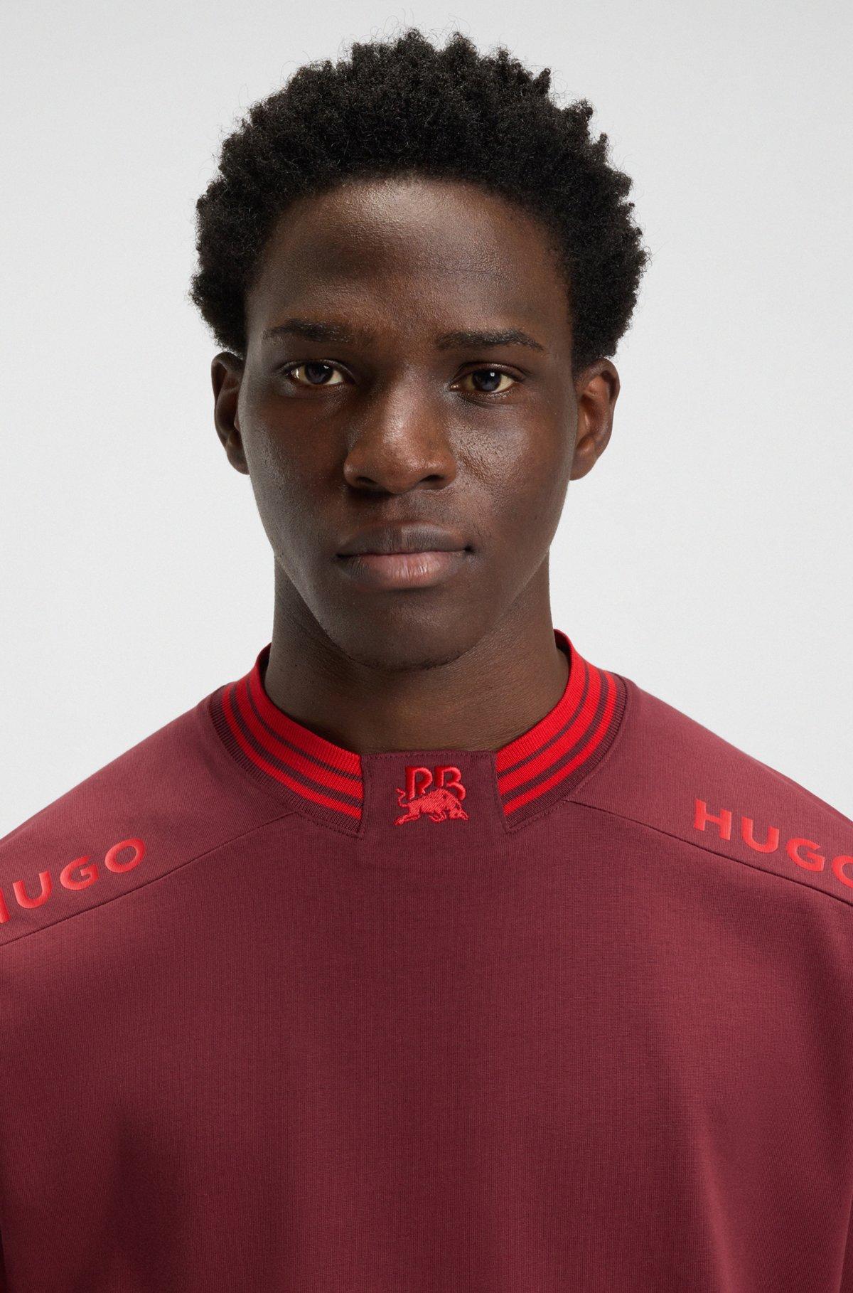 In weighty cotton with a roomy fit, this HUGO x RB men's T-shirt is packed with sporty appeal. Contrast tipping, bull graphic and logos. Celebrate the thrill of motorsports with this unique product from the high-octane collaboration between HUGO and the Visa Cash App Racing Bulls Formula One™ Team.