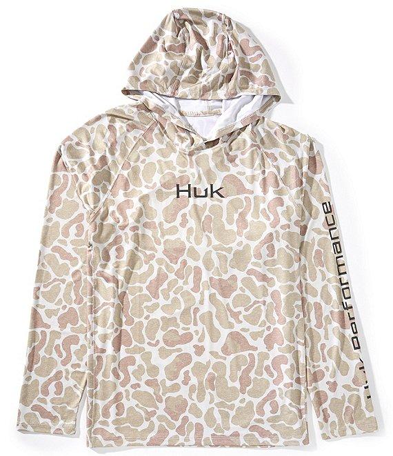 From Huk, this hoodie features: Allover camo print Hooded for additional sun protection Crew neck Long raglan sleeves for full range of motion Side panel details Pullover construction UPF 30+ Moisture transport Anti-microbial Cotton/polyester Machine wash/tumble dry Imported.