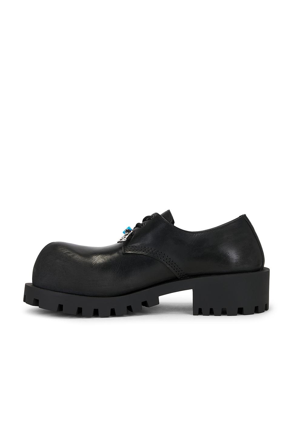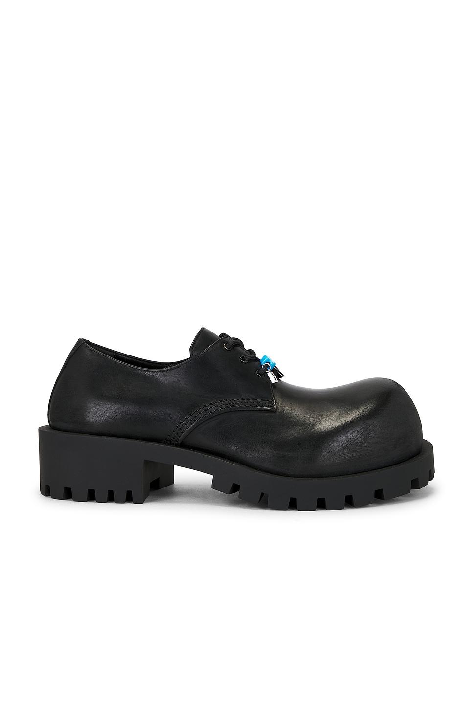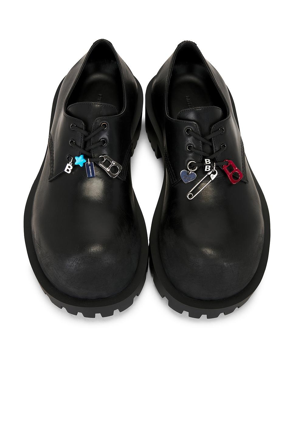 derby shoeIntentionally worn bullskin leather upper with TPU sole / Lace up front with attached charm detailingExposed side zip closure / Leather footbed and lining / Slightly asymmetrical rounded toe / Approx 25mm/ 1 inch platformApprox 50mm/ 2 inch heel / Made in Italy / Our Style No. BALF-MZ524 / Manufacturer Style No. 786136-WCDA3-1080 /