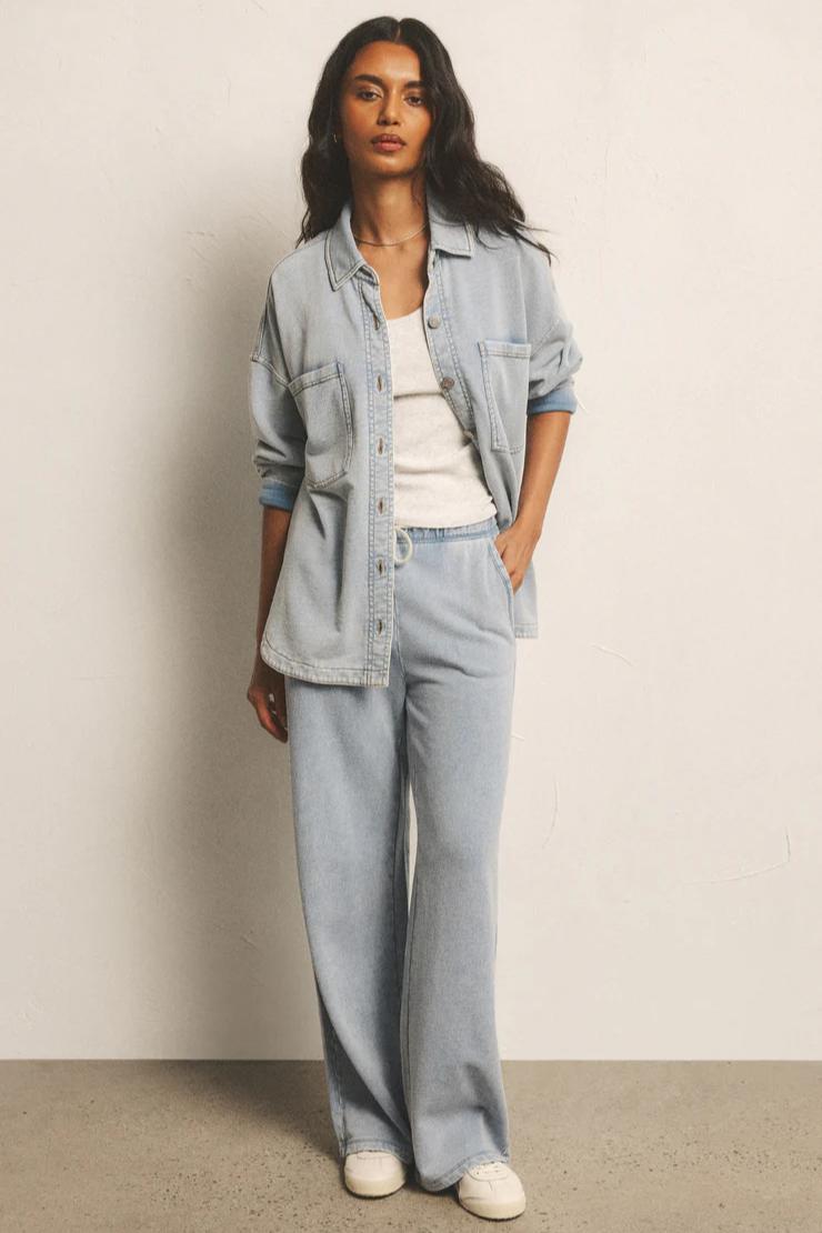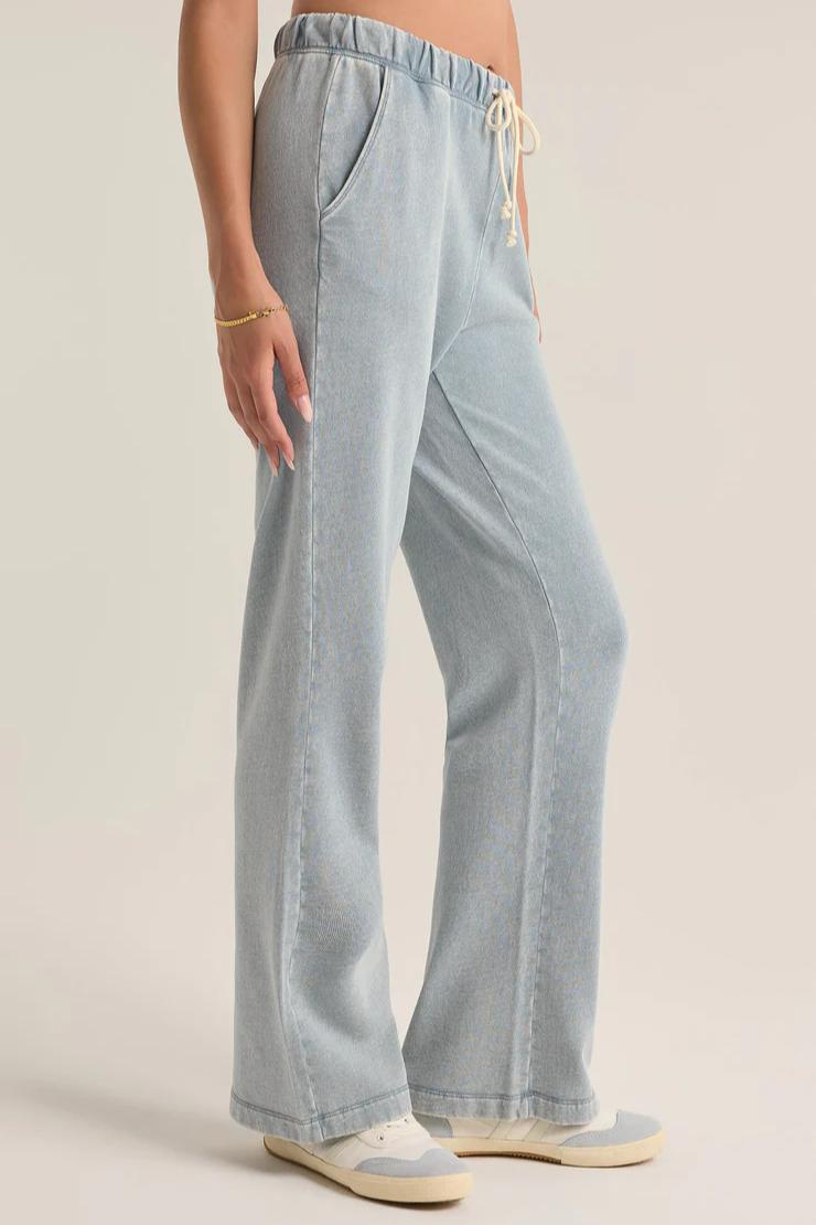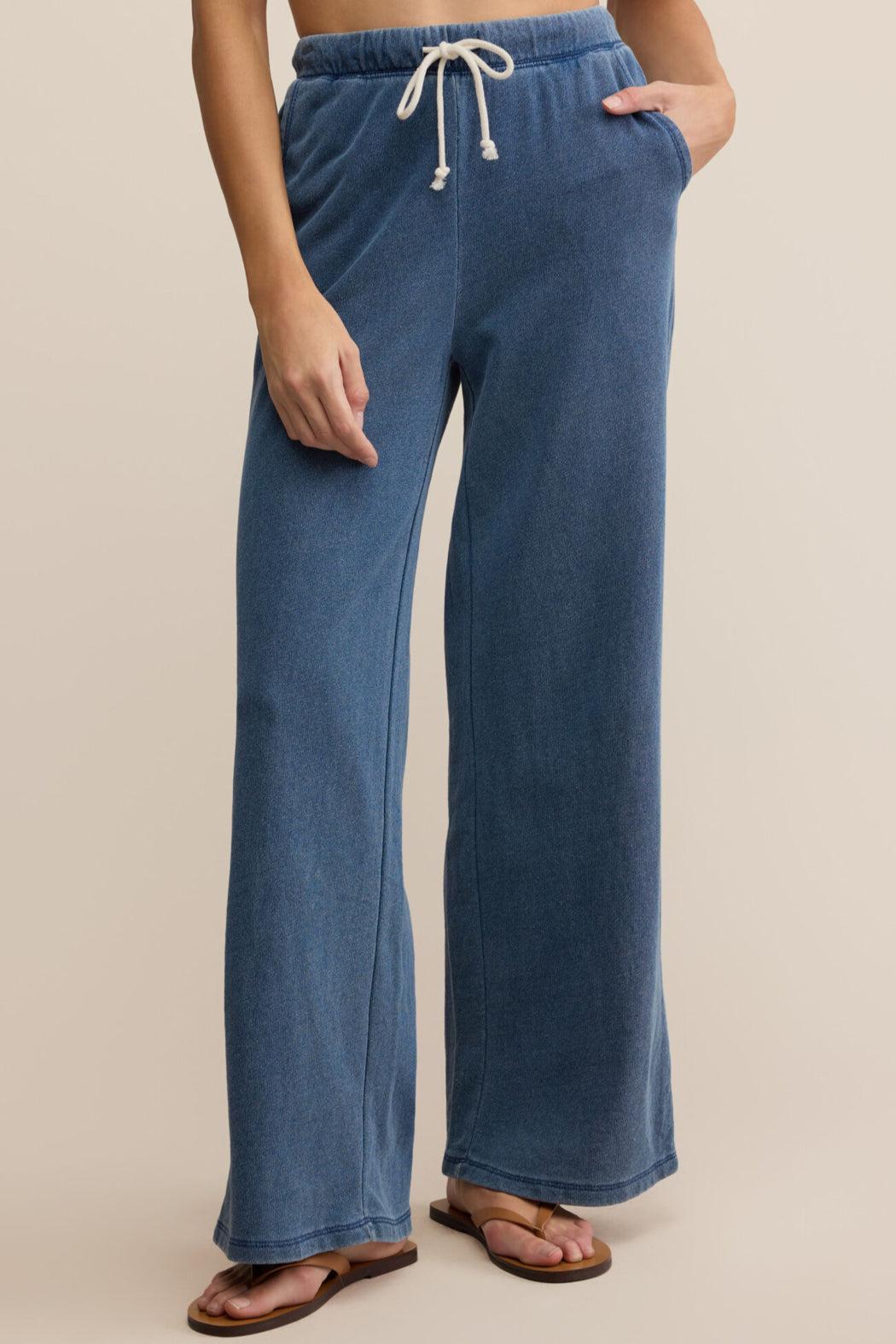 Say hello to your new go-to full-length pant, featuring sleek trouser pockets and a fully functional drawcord waistband for that perfect fit. Made from lightweight knit denim, these pants combine style and comfort effortlessly for any occasion.