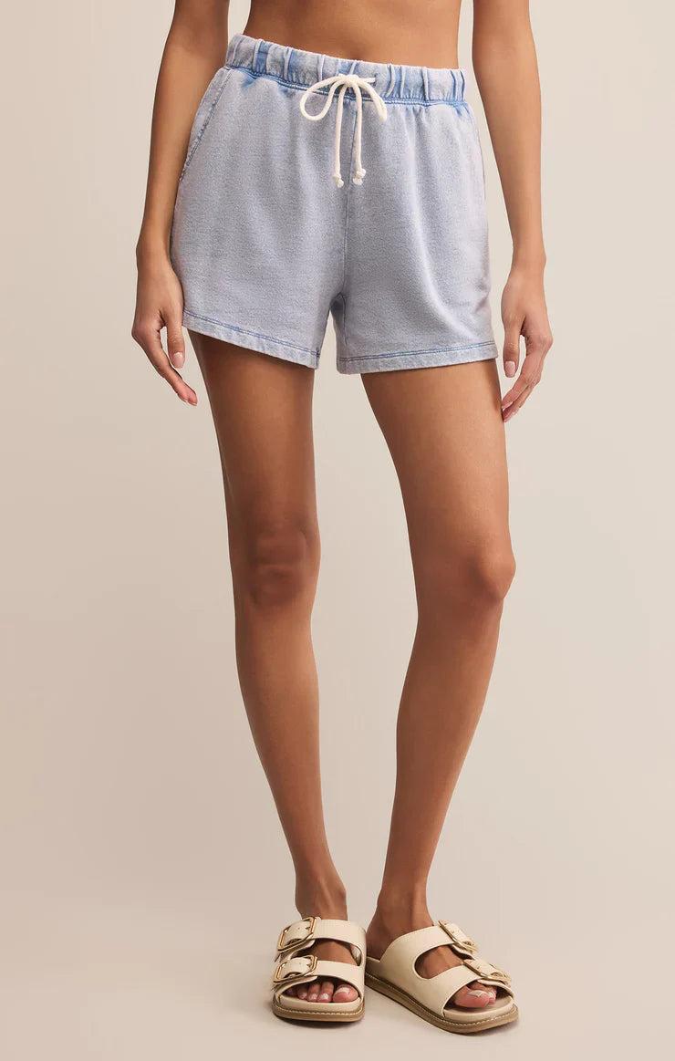 Kicked-back and cool, this knit denim French terry short has a lived-in look and feel. The contrast drawcord at the high-rise waist gives a little sporty twist, while the slash pockets keep it functional.