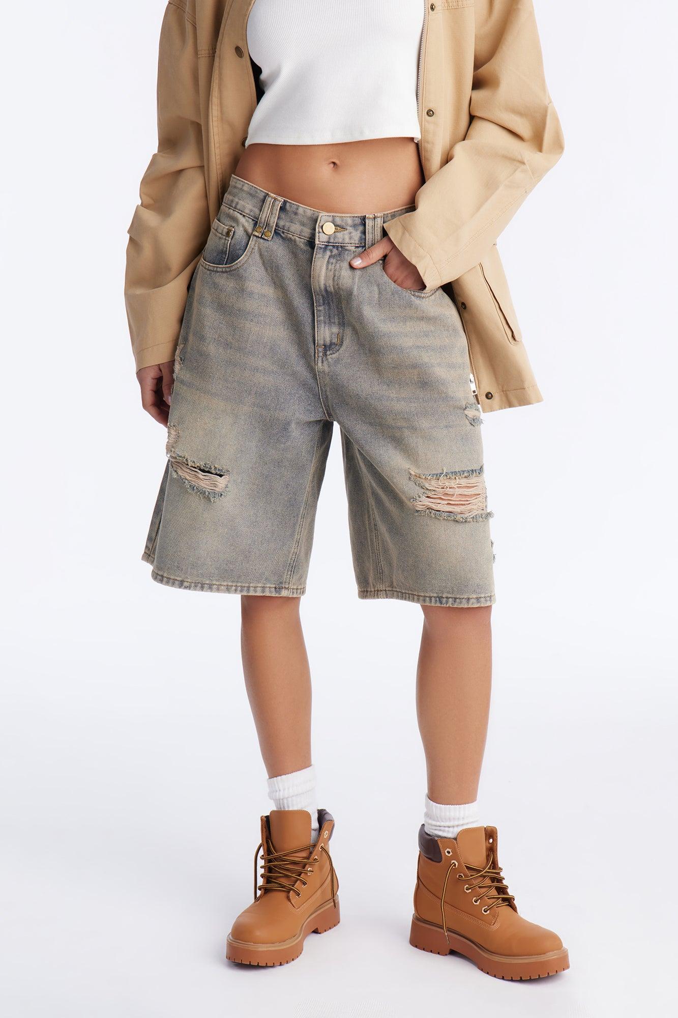 Huntress Ripped Denim Jorts - Vintage Wash Female