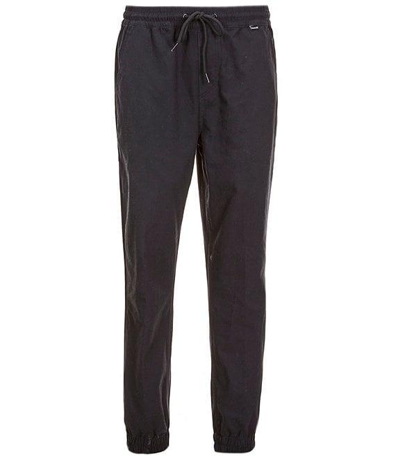 From Hurley, these jogger pants feature: Straight fit Drawstring/elastic waistband 2 front pockets Back welt pockets (wearer's back-right with button closure) Key loop at back right waistband Hurley scout patch and One and Only flag label Elastic hem Pull-on construction Cotton/spandex Machine wash/tumble dry Imported.
