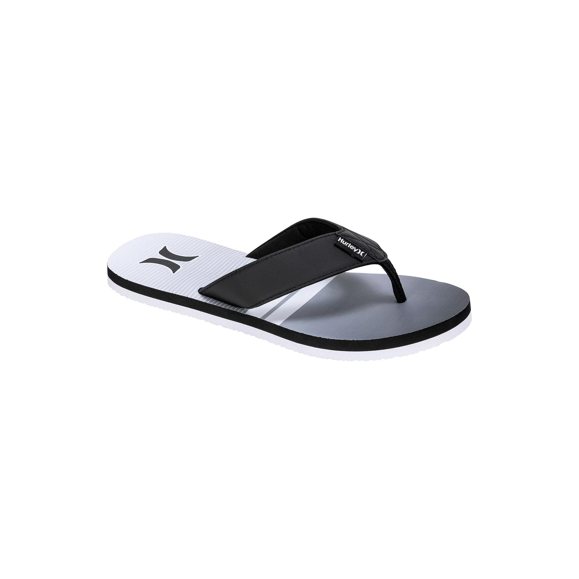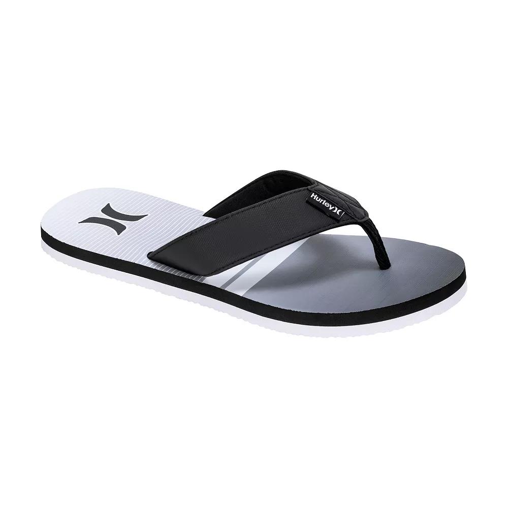 Unleash your laid-back style with Hurleys innovative flip flops sandals, designed for ultimate comfort and flair. Featuring a lightweight upper with plush padding and a uniquely printed footbed, these versatile sandals promise all-day support whether youre strolling along the beach or kicking back at a backyard barbecue.Click this FOOTWEAR GUIDE to find the perfect fit and more!Unleash your laid-back style with Hurleys innovative flip flops sandals, designed for ultimate comfort and flair. Featuring a lightweight upper with plush padding and a uniquely printed footbed, these versatile sandals promise all-day support whether youre strolling along the beach or kicking back at a backyard barbecue.Click this FOOTWEAR GUIDE to find the perfect fit and more!FEATURES Lightweight upper with padded backing Printed footbed with logos and patterns 2-colored sandwiched sole Textured outsoleDETAILS PU upper Polyester lining EVA midsole Rubber outsole Plain toe Slip-on EVA footbed Slip-resistant outsole Spot clean Imported Size: 12. Color: Black White Stripe. Gender: male. Age Group: adult.