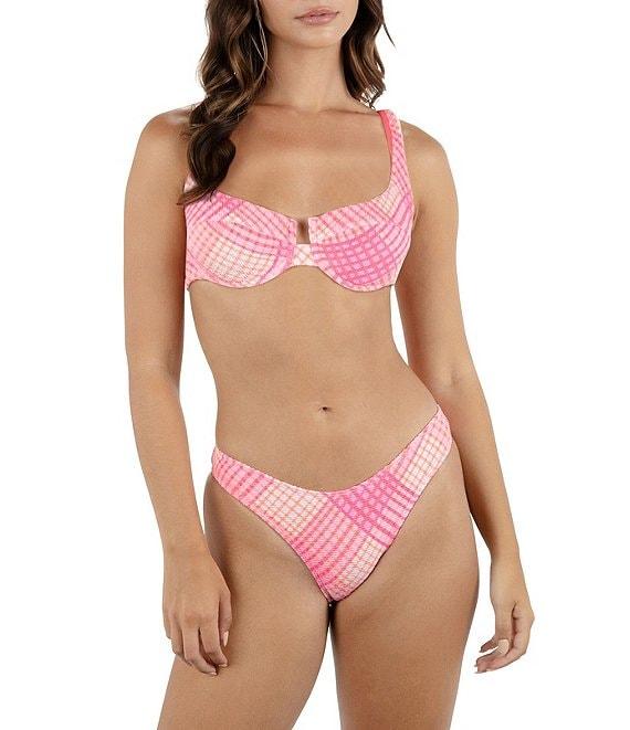 Hurley Ombre Plaid Scoop Waist Cheeky Swim Bottom