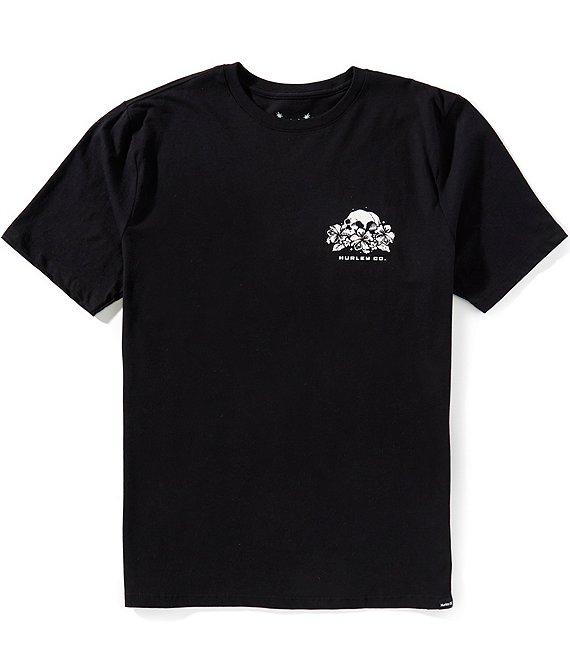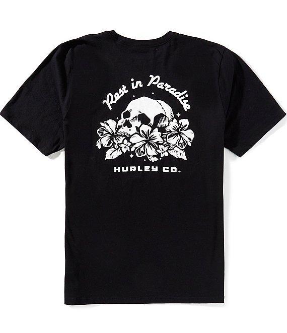 From Hurley, this t-shirt features: Crew neckline Short sleeves "Rest In Peace" verbiage, "Hurley Co." logo and flower and skull print on the front and back Custom back neck artwork One and Only clip label Pullover construction Cotton Machine wash/tumble dry Imported.