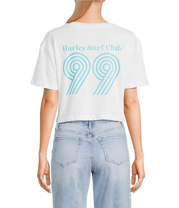 From Hurley, this t-shirt features: Ribbed crew neckline Short sleeves "Hurley" logo and other verbiage screen printed on the chest "Hurley Surf Club" and the numeral "99" screen printed on the back Pullover styling Cropped silhouette Vintage-washed cotton loose-knit jersey Machine wash/tumble dry Imported.