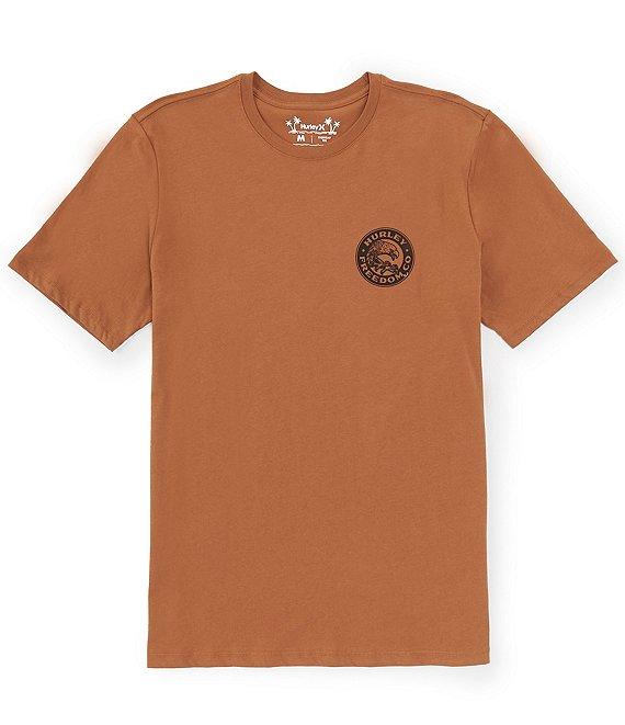 From Hurley, this T-shirt features: Crew neckline Short sleeves Small circle-shaped graphic logo on the left side of chest Large Americana eagle and flag, soft-hand screen printed on the back Custom back neck artwork One and Only woven label Side seam detailing Pullover construction Midweight cotton jersey Machine wash/tumble dry Imported.