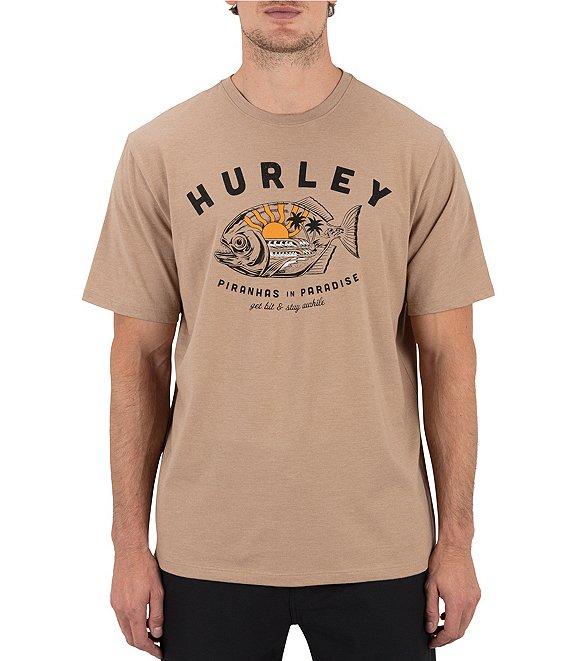 From Hurley, this t-shirt features: Crew neckline Short sleeves Graphic logo on the front Straight hem Pullover construction Cotton/polyester Machine wash/tumble dry low Imported.