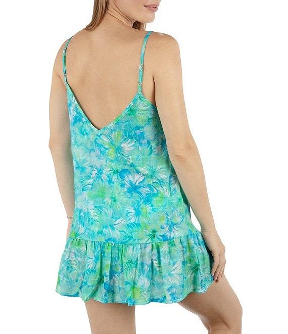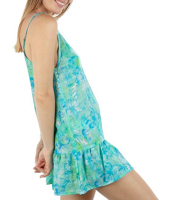 Hurley Tropic Dreams V-Neck Ruffle Swim Cover-Up Dress