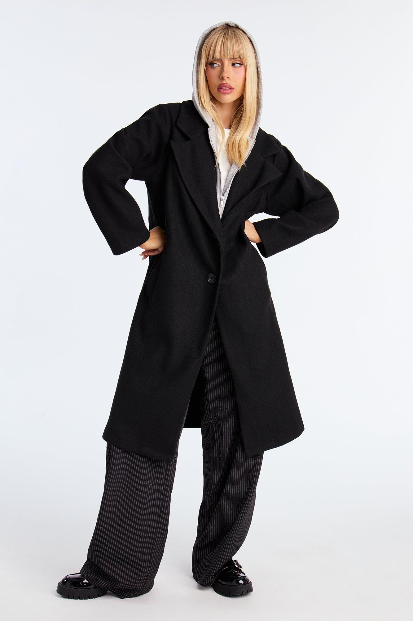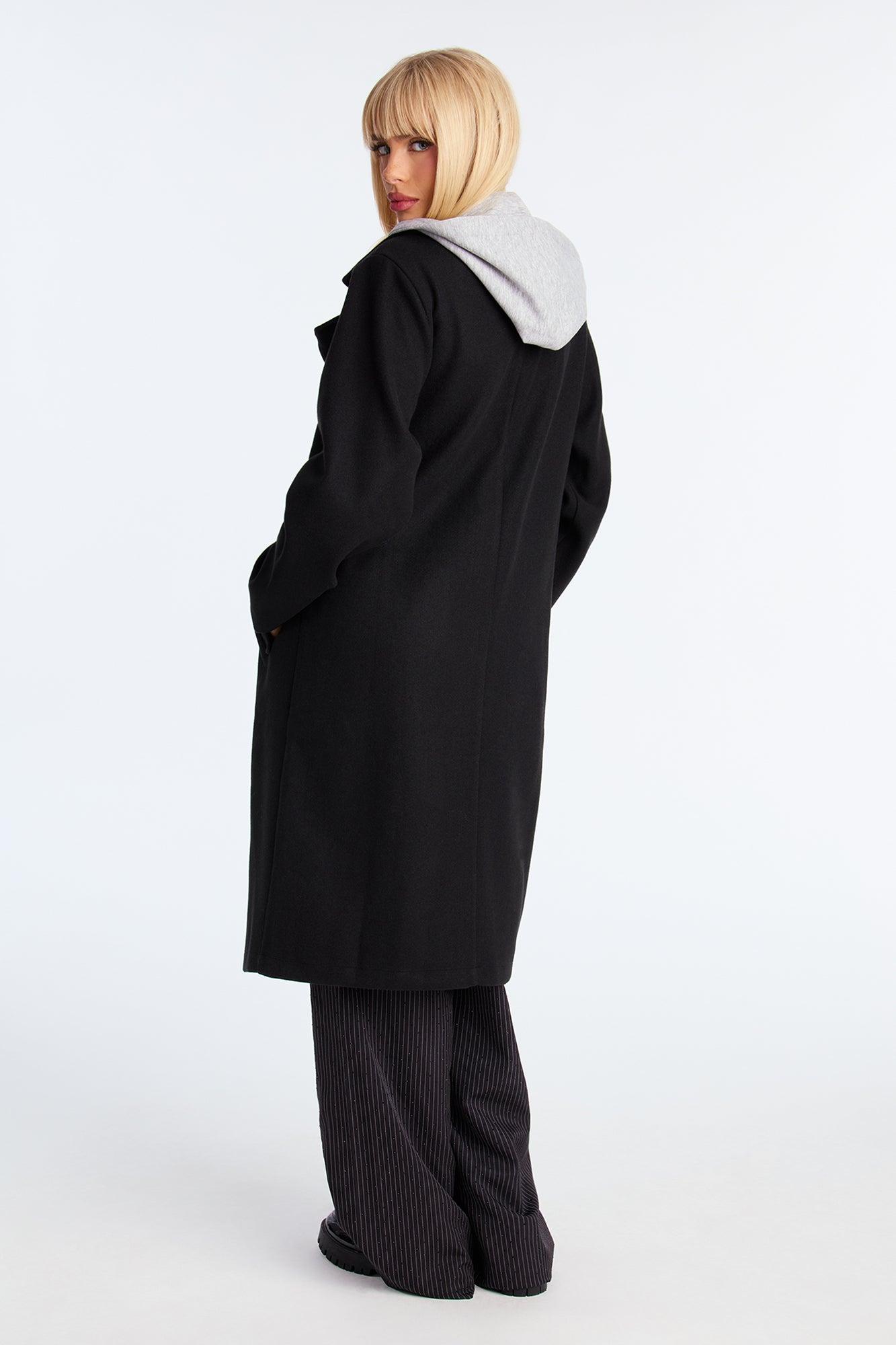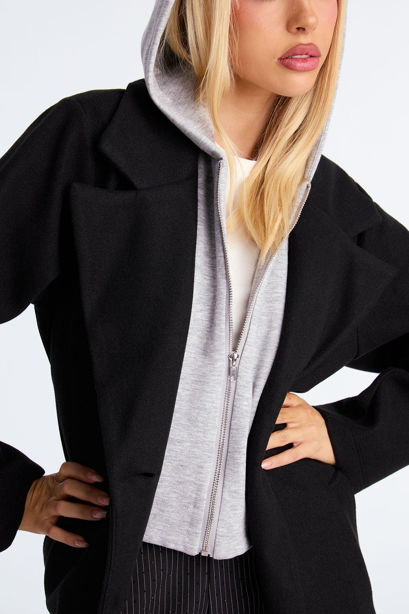 Hustle Culture Two-Fer Hooded Coat - Black/combo Female
