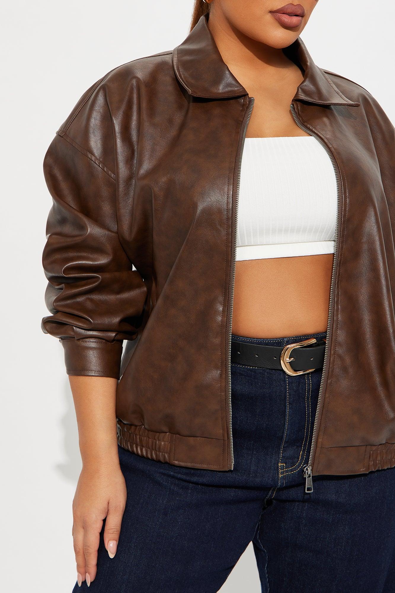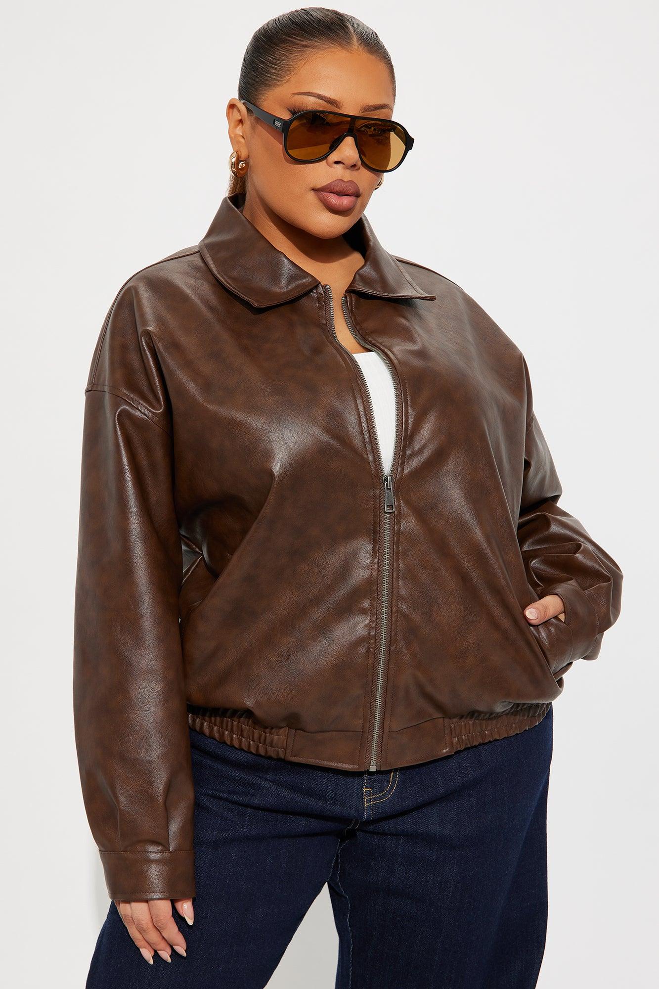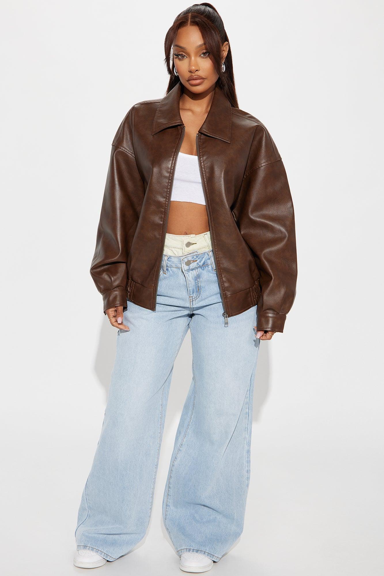 Hustle Mode Oversized Faux Leather Jacket - Chocolate