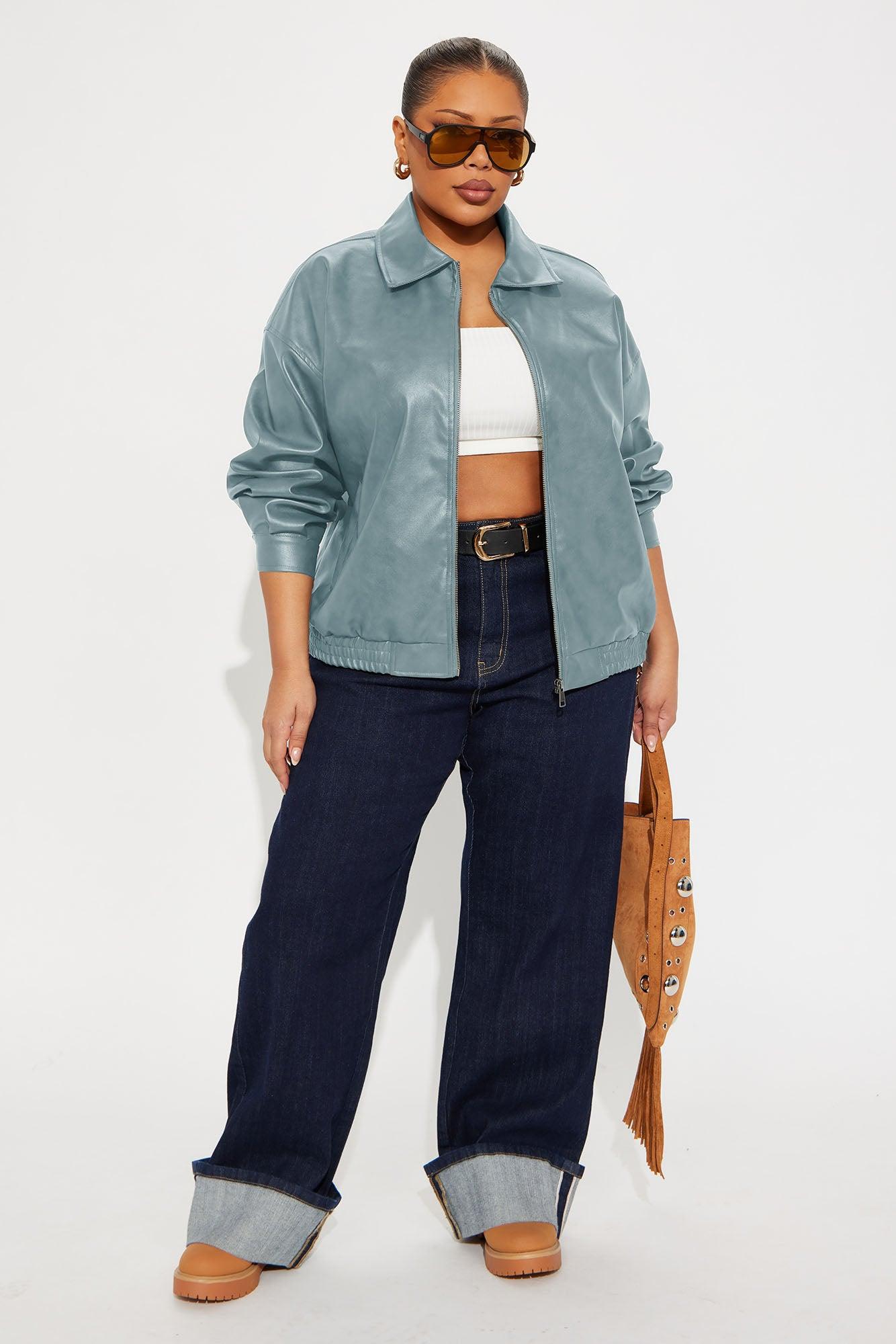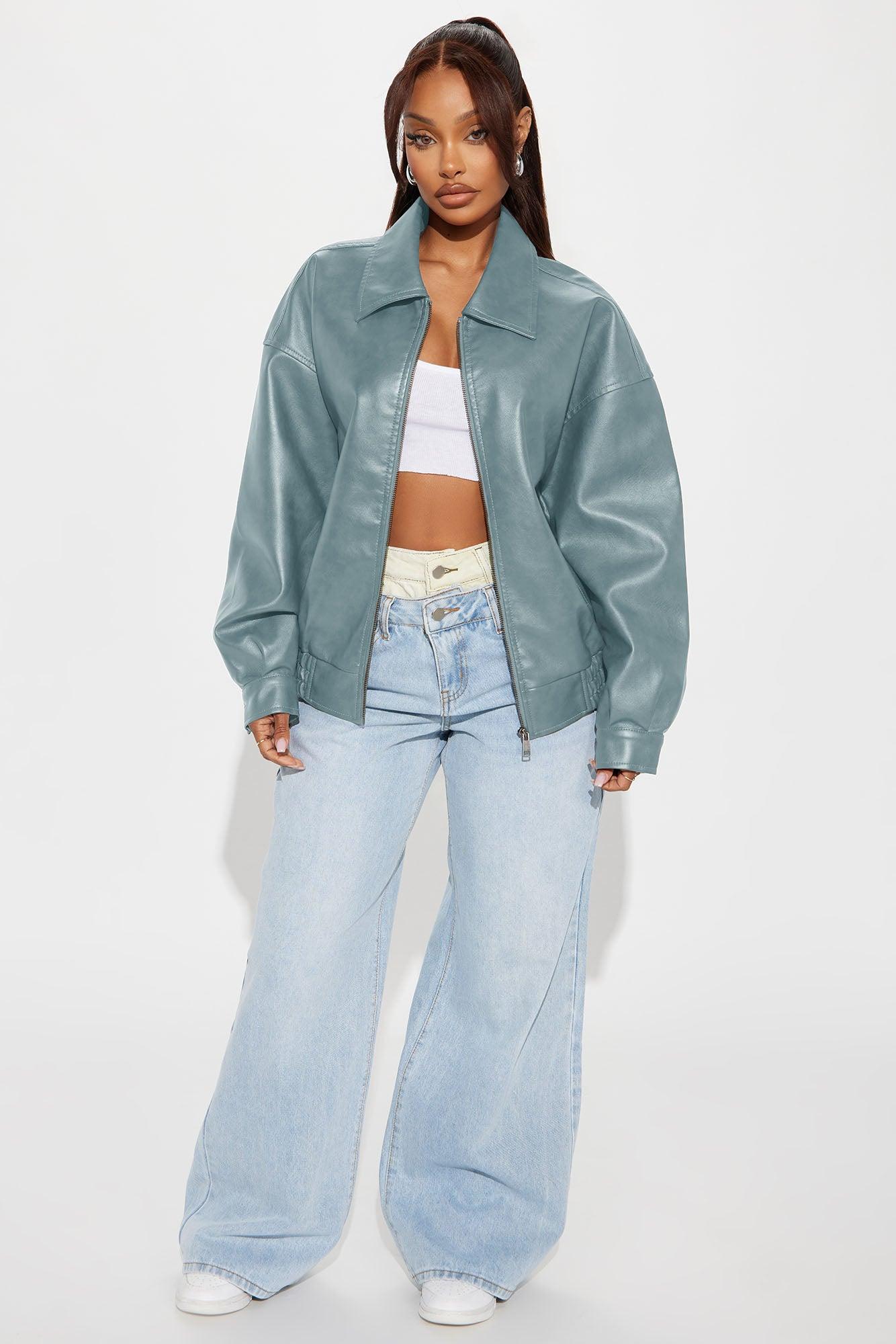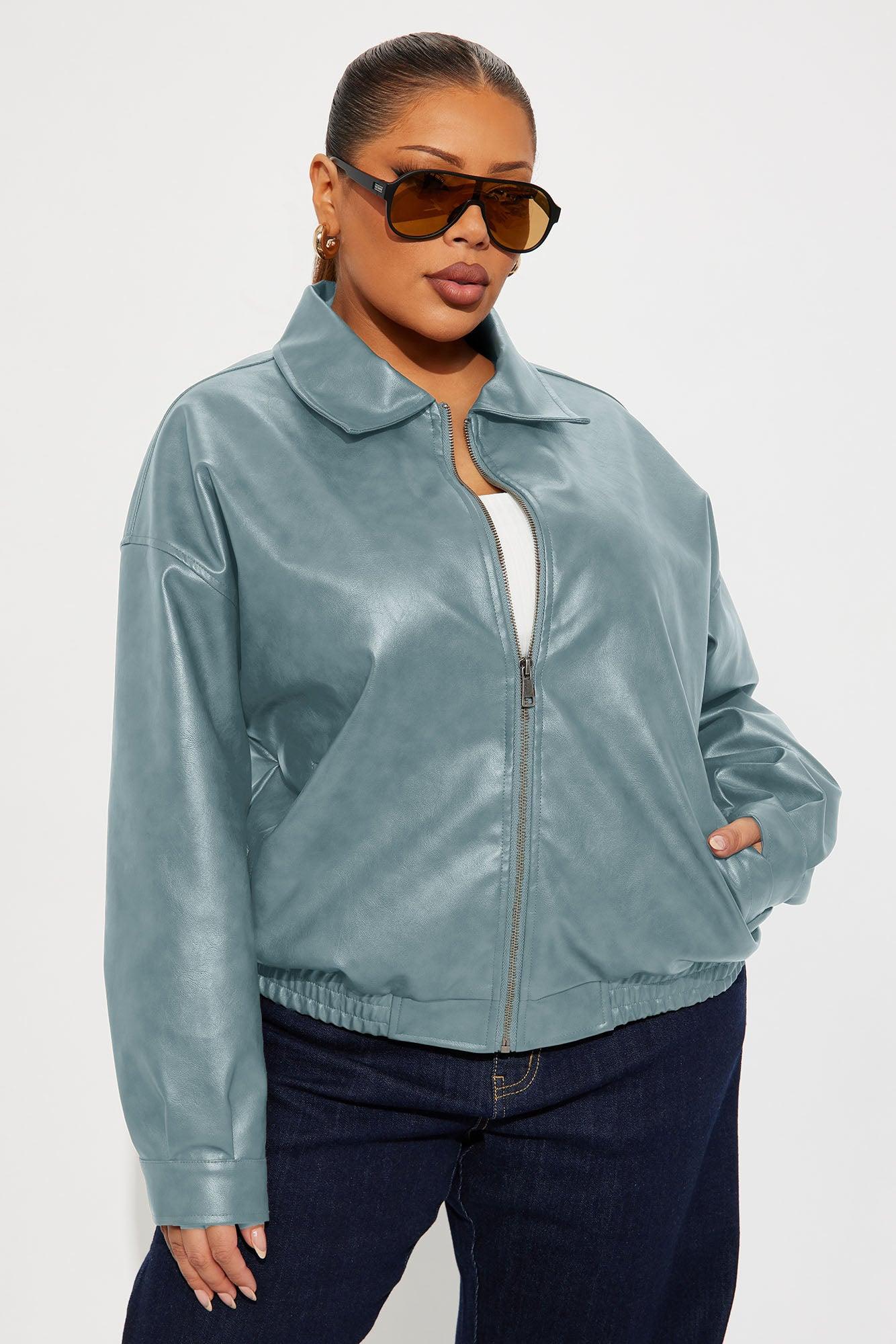 Hustle Mode Oversized Faux Leather Jacket - Slate Blue Female
