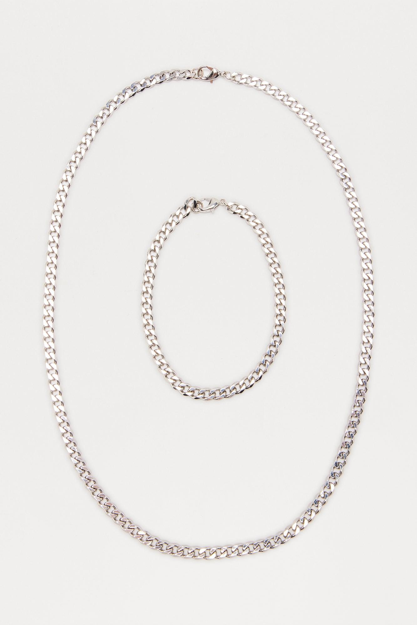 Hustler Necklace And Bracelet Set - Silver Male