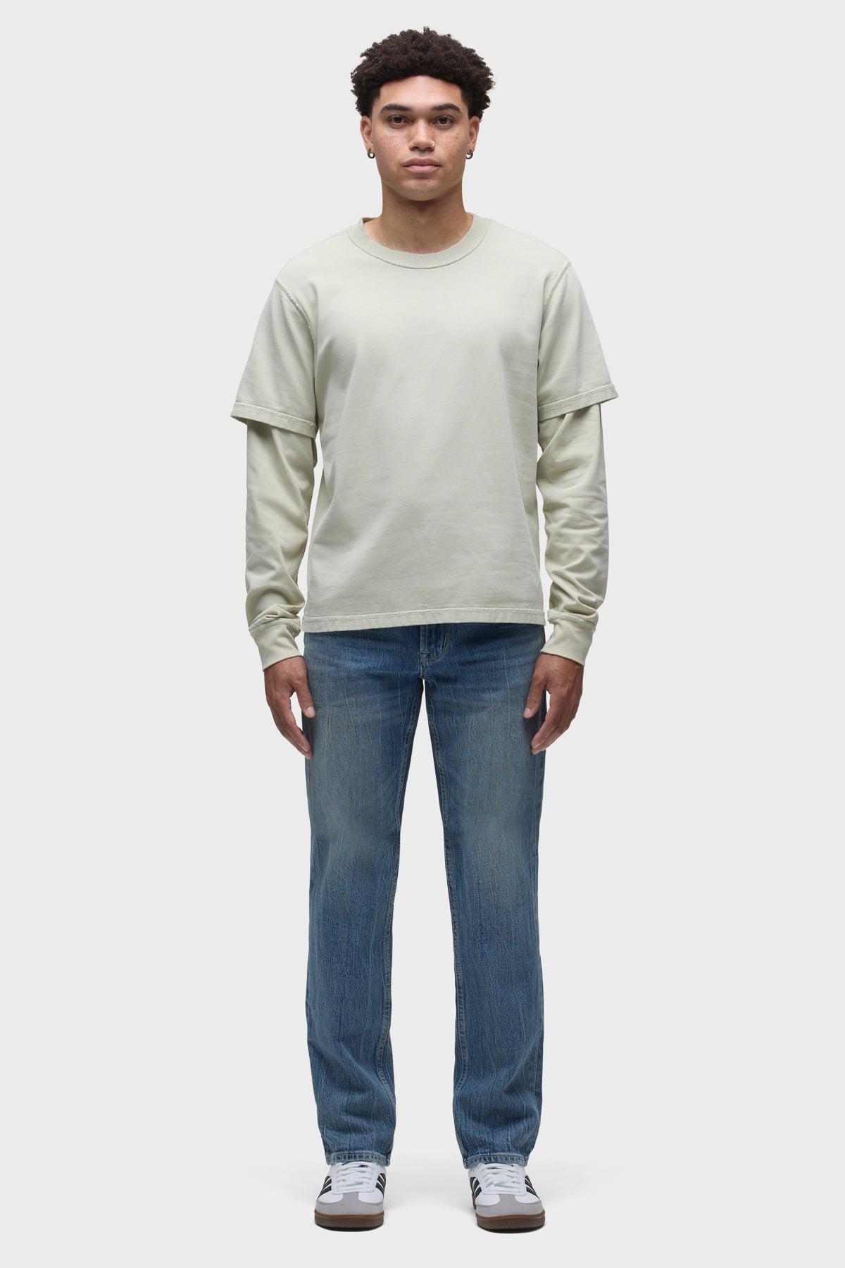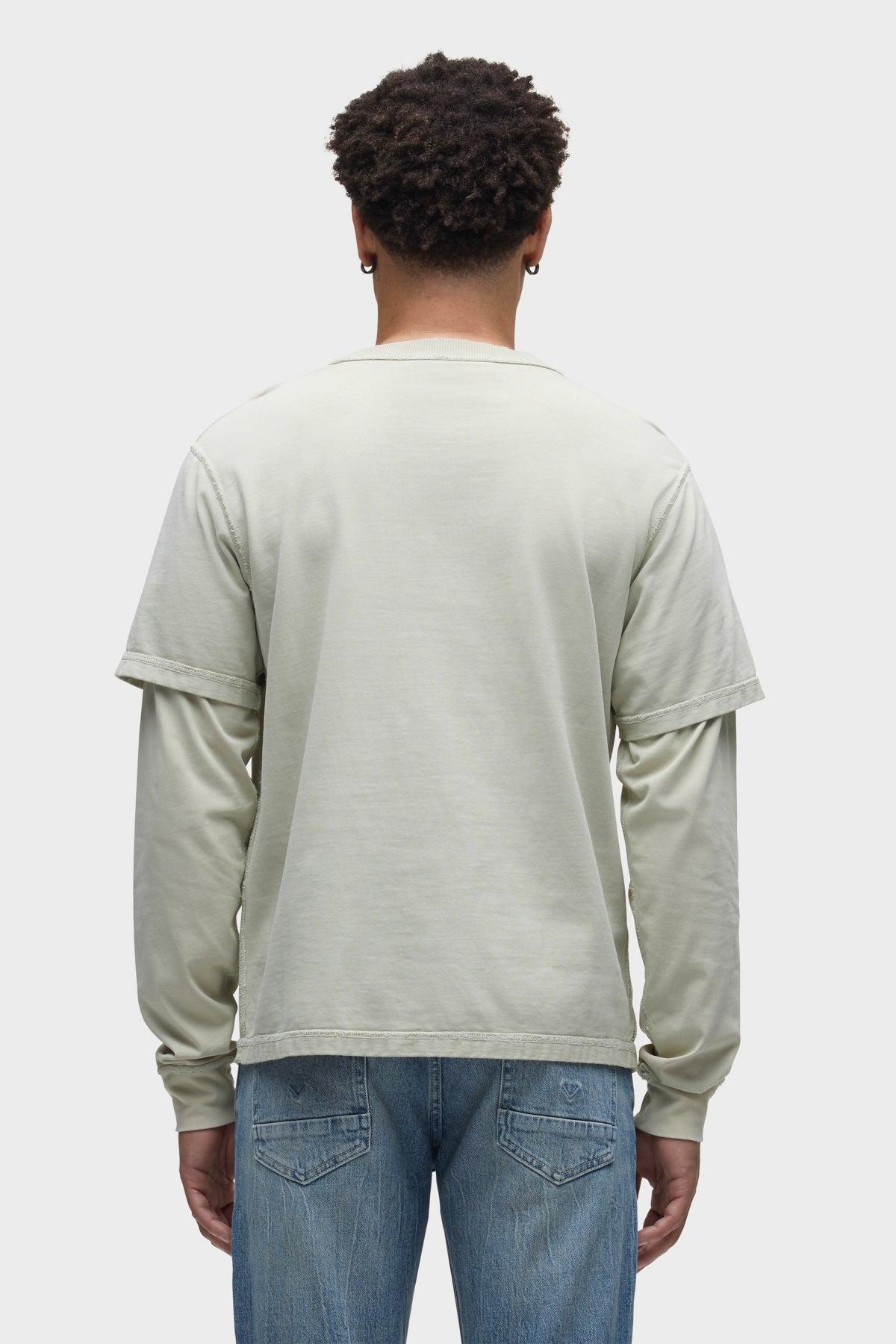 Description The Hybrid Long Sleeve Tee is made from heavyweight cotton jersey in Sandstone, an overdyed light tan. The style features the throwback combo of a relaxed-fit short sleeve tee layered over a lightweight cotton jersey long sleeve tee. Product Details Body Length: 26.5", Chest: 45", Short Sleeve Length: 8.75" / Long Sleeve Length: 26.25"Model Height 6’1"Model wearing size MMeasurements based on size M Fit & Care Content: 100% CottonMachine wash cold with like colorsDo not bleachTumble dry low or hang to dry