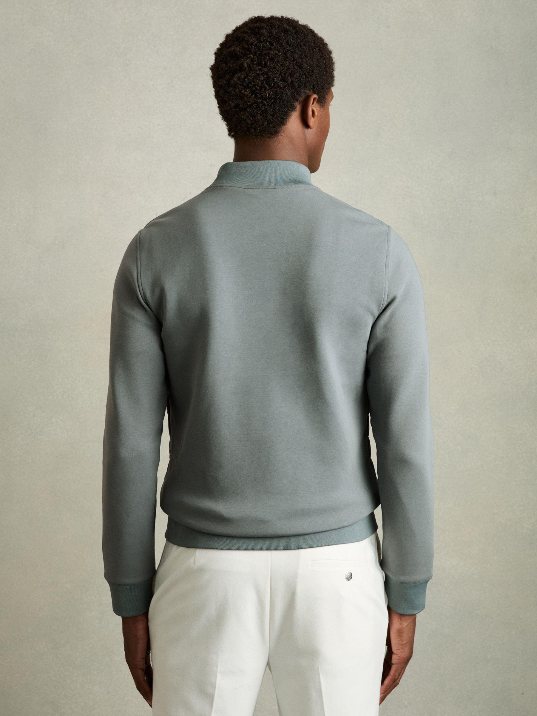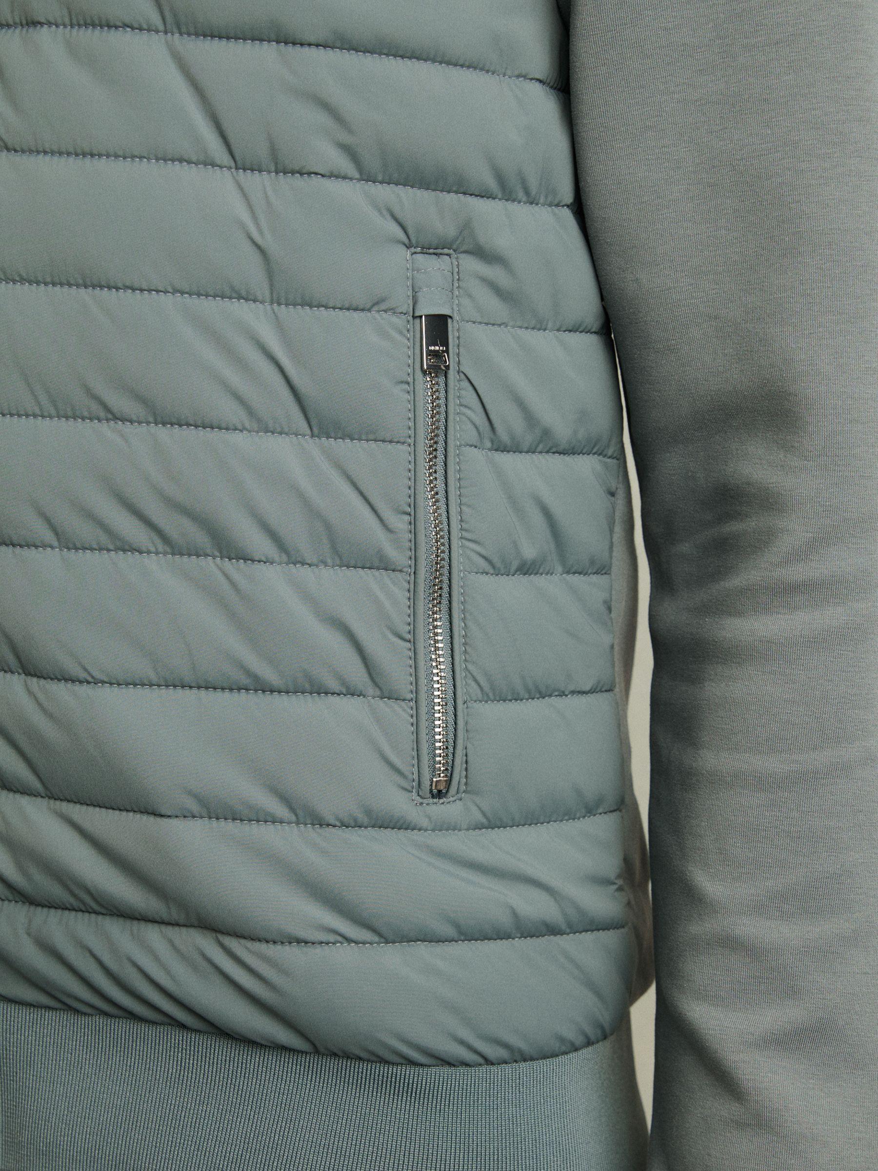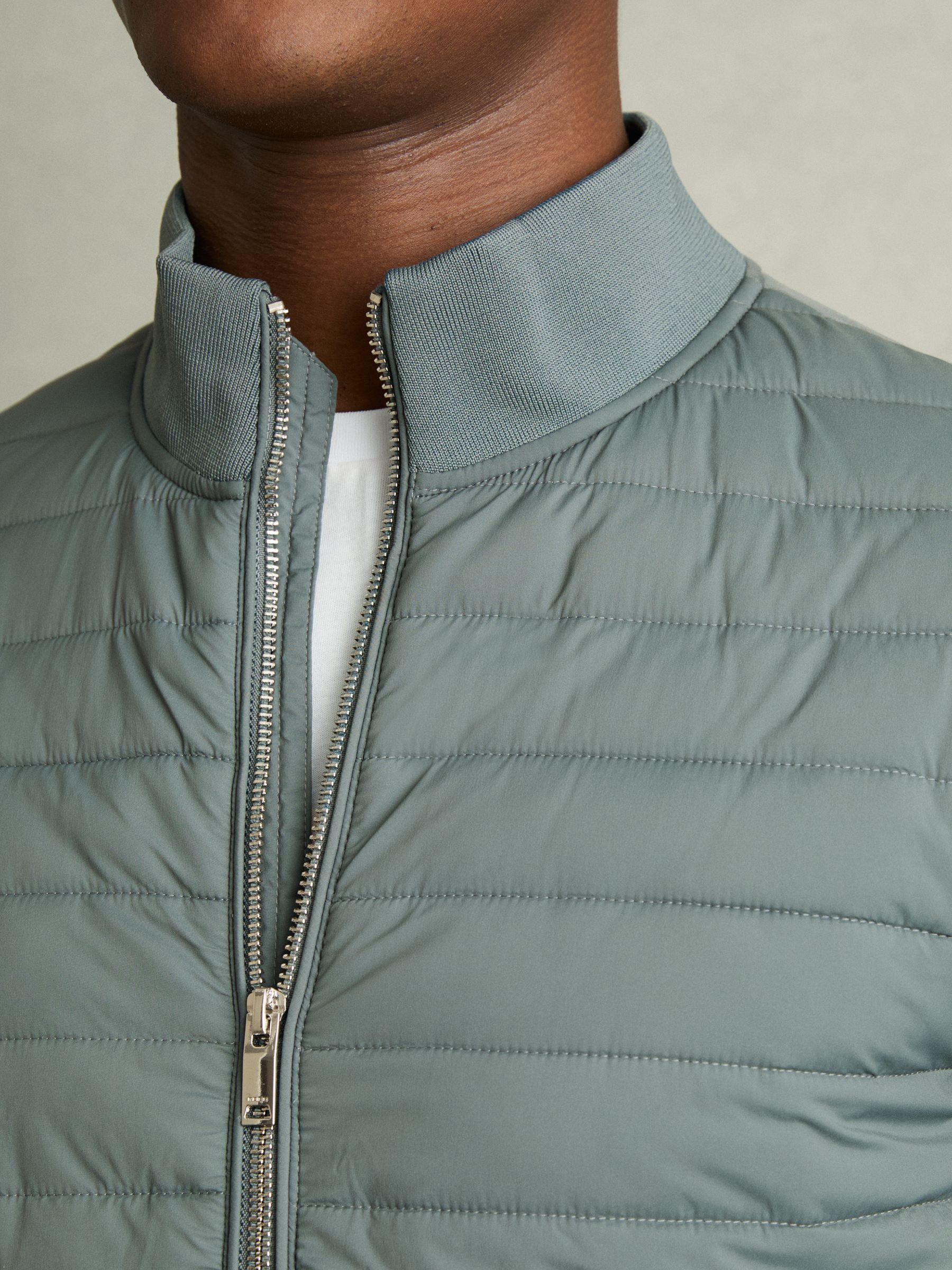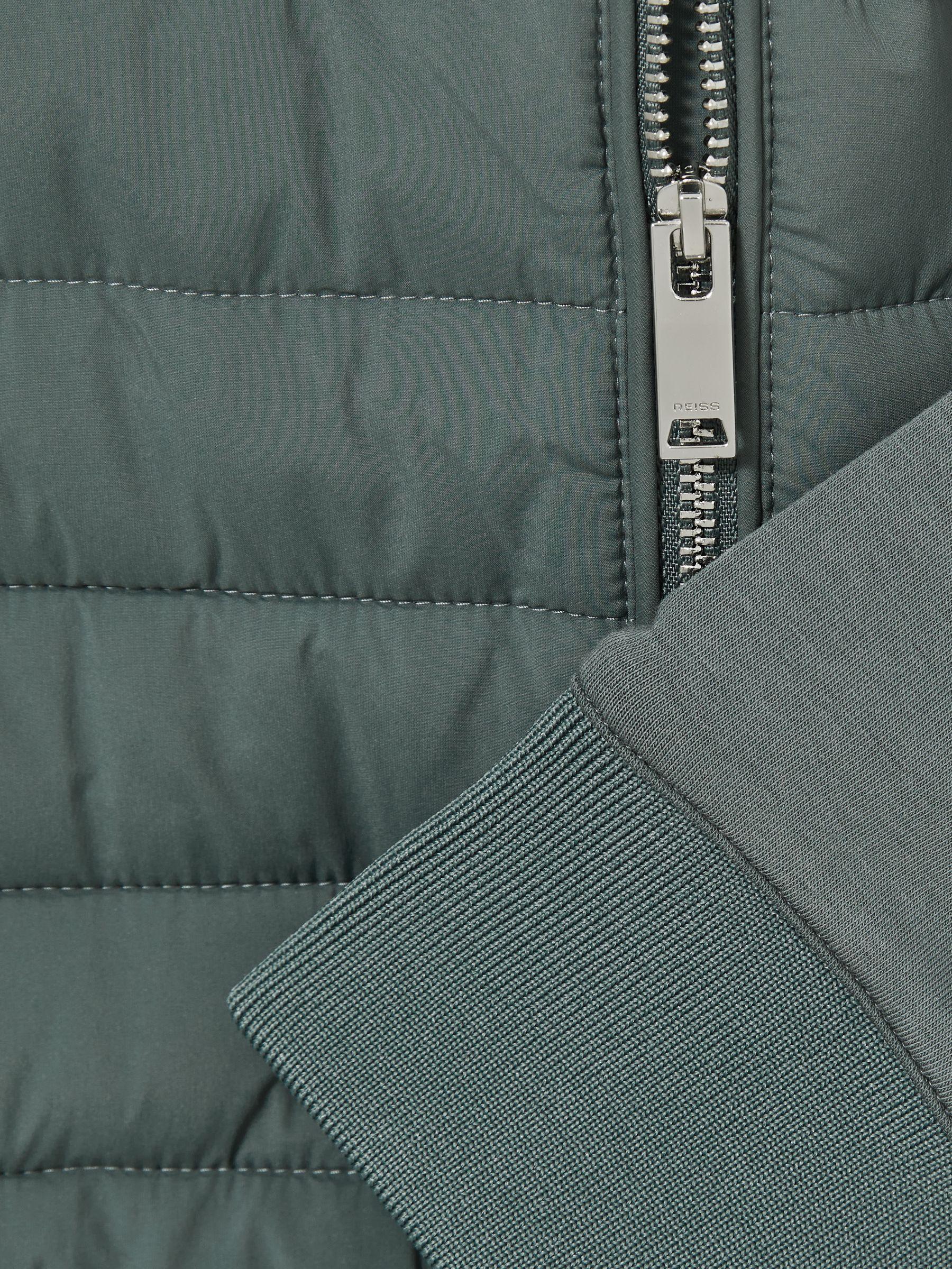 Hybrid Quilt and Knit Zip-Through Jacket in Teal Green