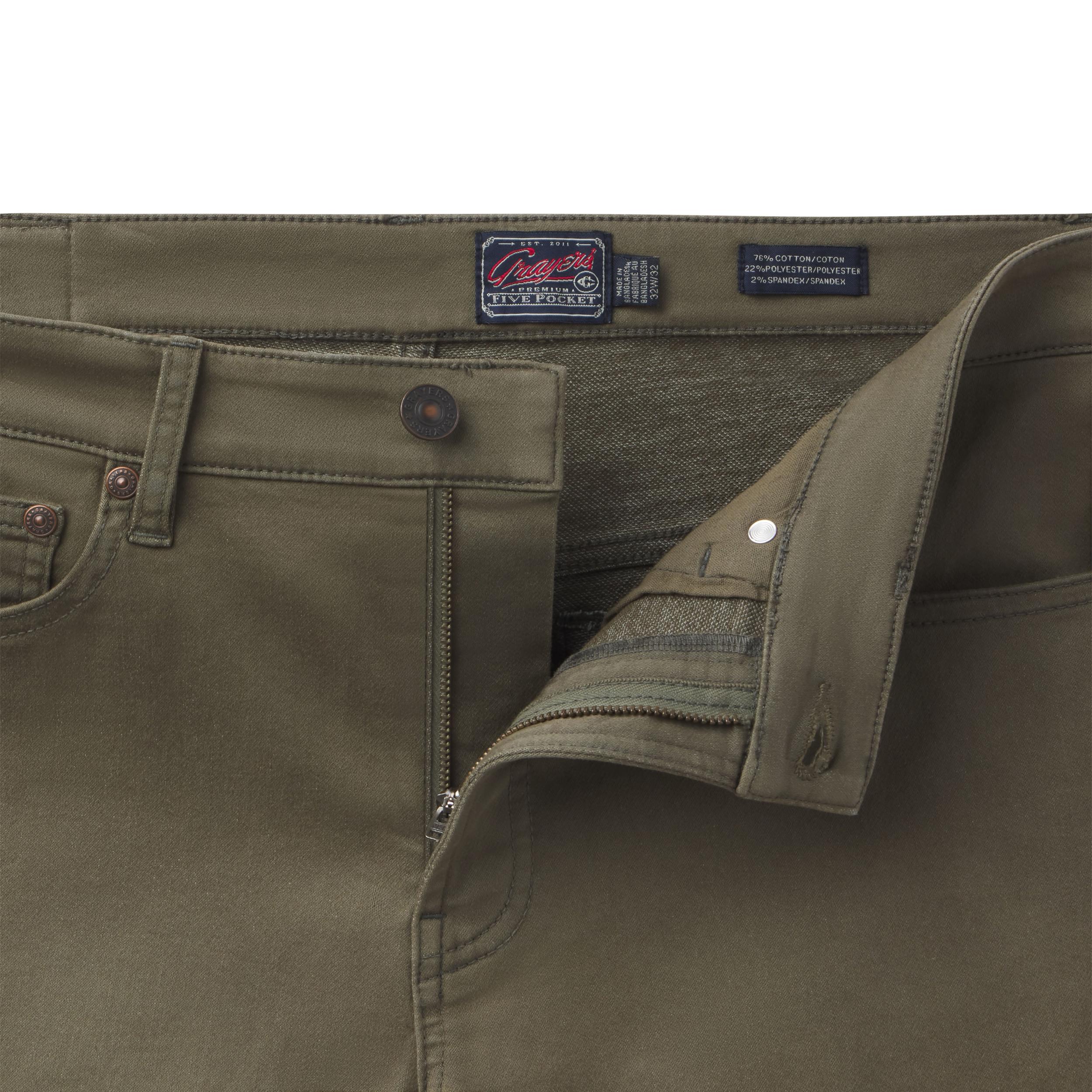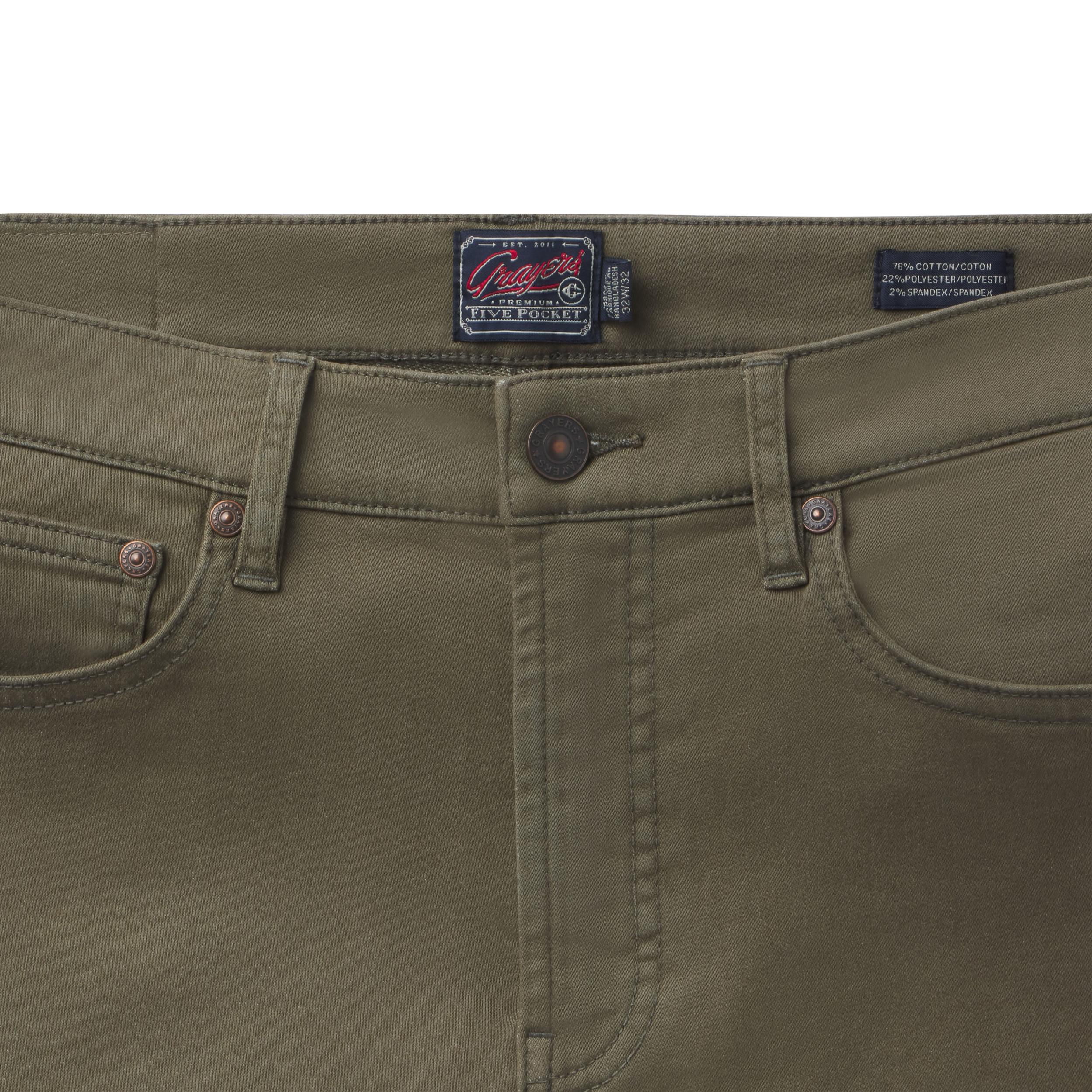 A perfect range of motion. Born out of necessity, every seam in our hybrid stretch 5-pocket pant has been engineered to follow the way your legs move. They’re constructed with a unique 9 oz. fabric that walks the line between a woven and a knit, ultimately behaving like both. Durable with ample stretch, this pant delivers comfort, functionality and style. The Model is also wearing: Model: ----Details---- Hybrid 9 oz 4-way stretch fabric Slim Fit 5 Pocket Straight leg Rivet reinforced Rear leather patch Signature Grayers hardware YKK Zipper Imported ----Materials---- 76% Cotton 22% Polyester 2% Spandex ----Size & Fit---- Measuring Method: All measurements are in inches and based on a “flat” garment, as shown below. For comparison with one of your existing garments, please lay garment on a flat surface and follow the key measurement points. ----Care---- Machine Wash Cold Separately Do Not Soak Before Washing Do Not Bleach Remove Promptly Tumble Dry Low Cool Iron if Necessary