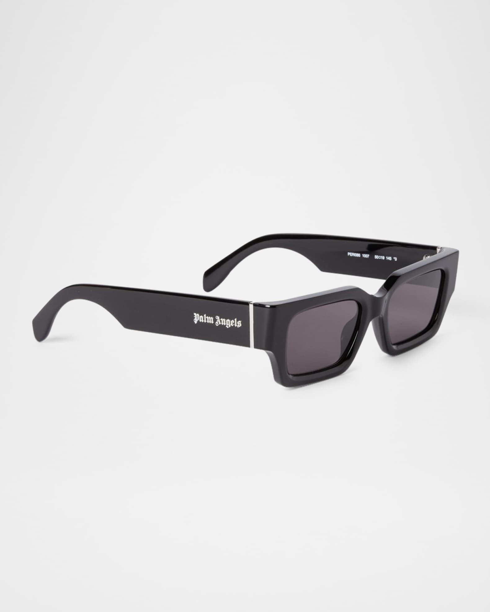 Palm Angels "Hyde" rectangle sunglasses in acetate Eye/bridge/temple (in mm): 50-19-145 Solid lenses Saddle nose bridge Wide tapered arms Classic logo detail at the temples Acetate 100% UVA/UVB protection Made in Italy Proposition 65 warning for California residents