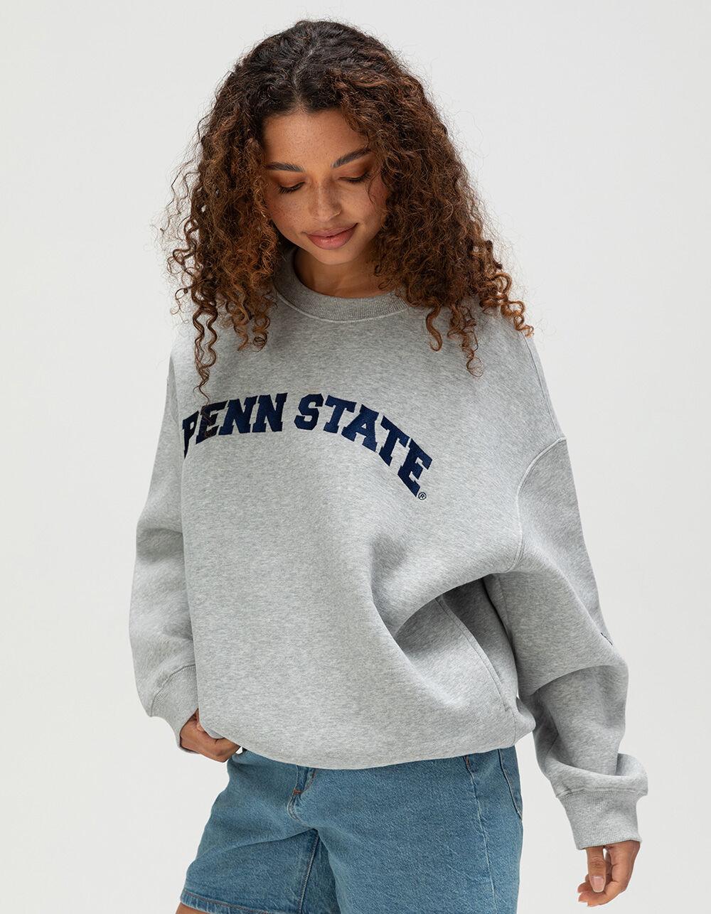 HEATHER GRAY. Hype And Vice Penn State University Crewneck Sweatshirt. Applique lettering at chest. Embroidered logo patch at left sleeve. Side seam hand pockets. Crew neck. Cuffed long sleeves and hem. Fleece lining. 50% Cotton 49.8% Polyester 0.2% Viscose. Hand wash. Imported.