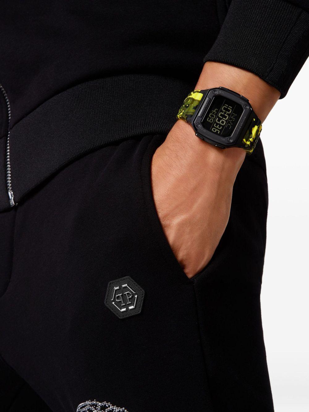 Philipp Plein Hyper $hock 44mm | Black | 44mm | stainless steel case | battery-operated movement | square face | digital–analogue display | luminescent dial | camouflage pattern | silicone strap | tang-buckle fastening | This item comes with a standard two-year warranty from the brand. | Mineral Glass/Silicone/stainless steel | Fashion Watches | Contemporary Watches | Watches | Men