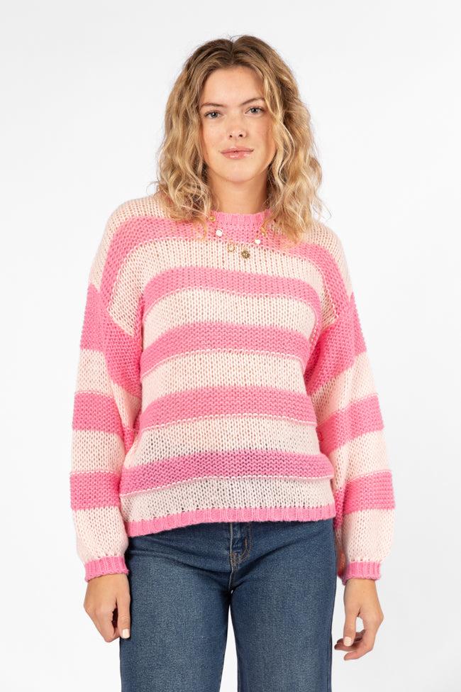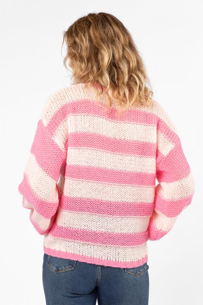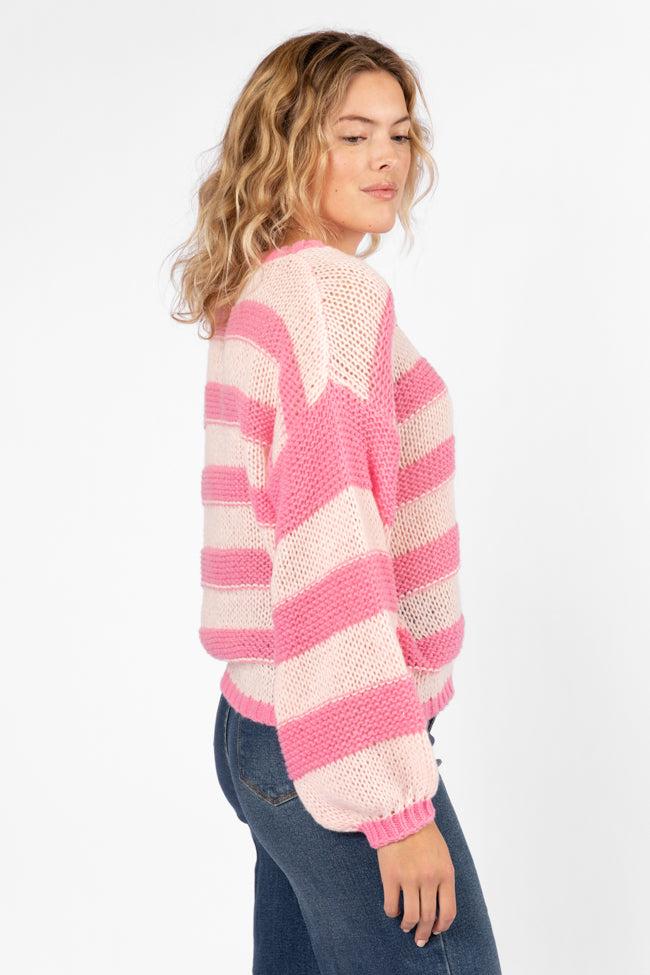 Details Pink Textured Stripe Sweater Fabric has stretch Crew neckline, ribbed hem Pair this sweater with a cute skort! Unlined Size small from shoulder to hem: 22" Material and Care 100% polyester Hand wash cold, tumble dry low Patterns may vary Materials may have natural variations Colors may vary from different viewing devices.