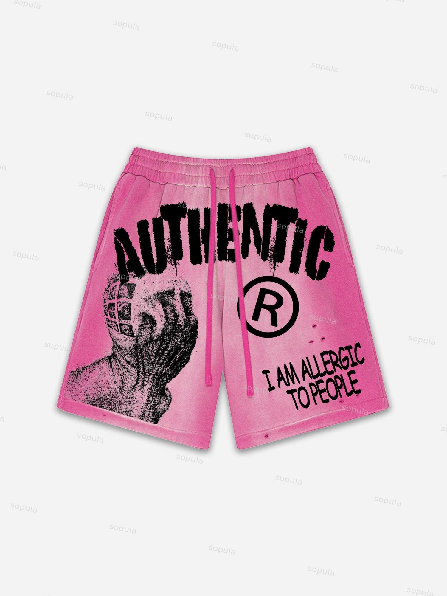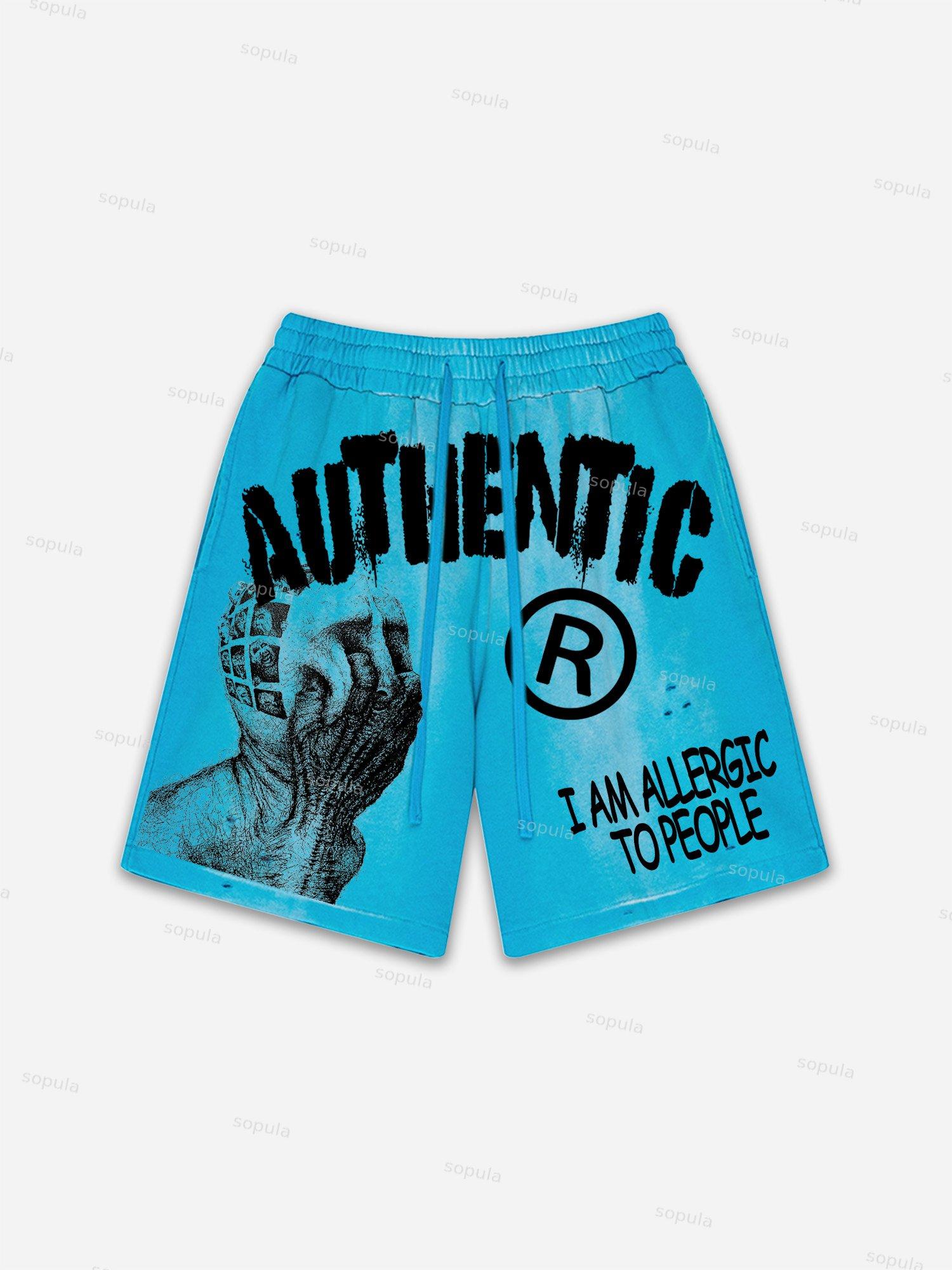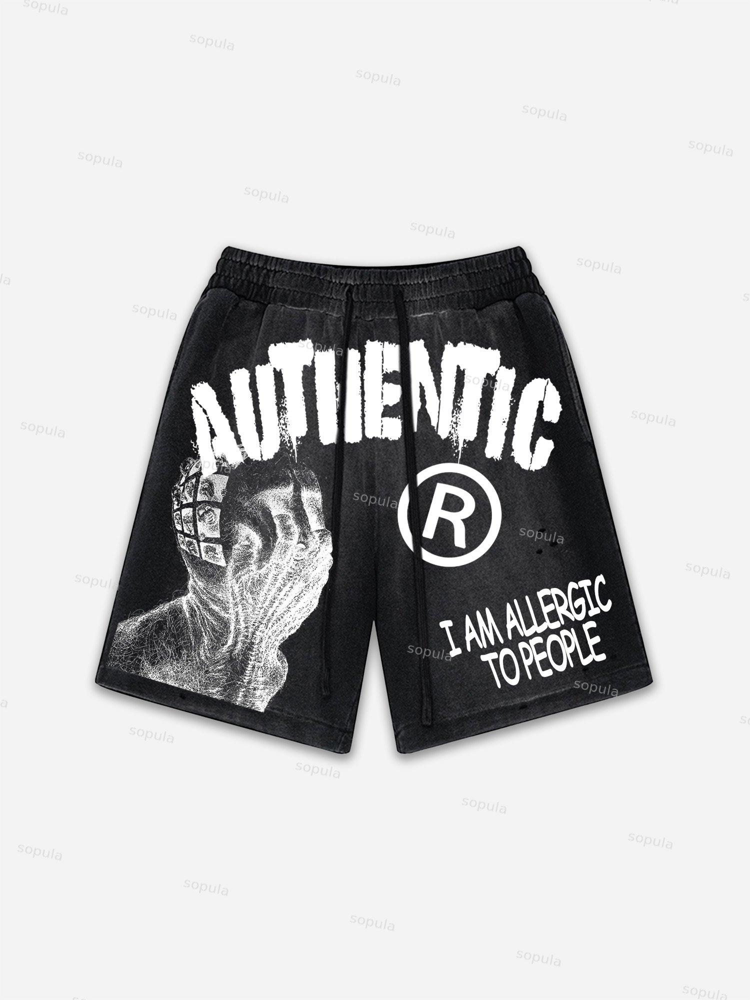 I Am Allergic To People Graphic Print Vintage Washed Ripped Shorts