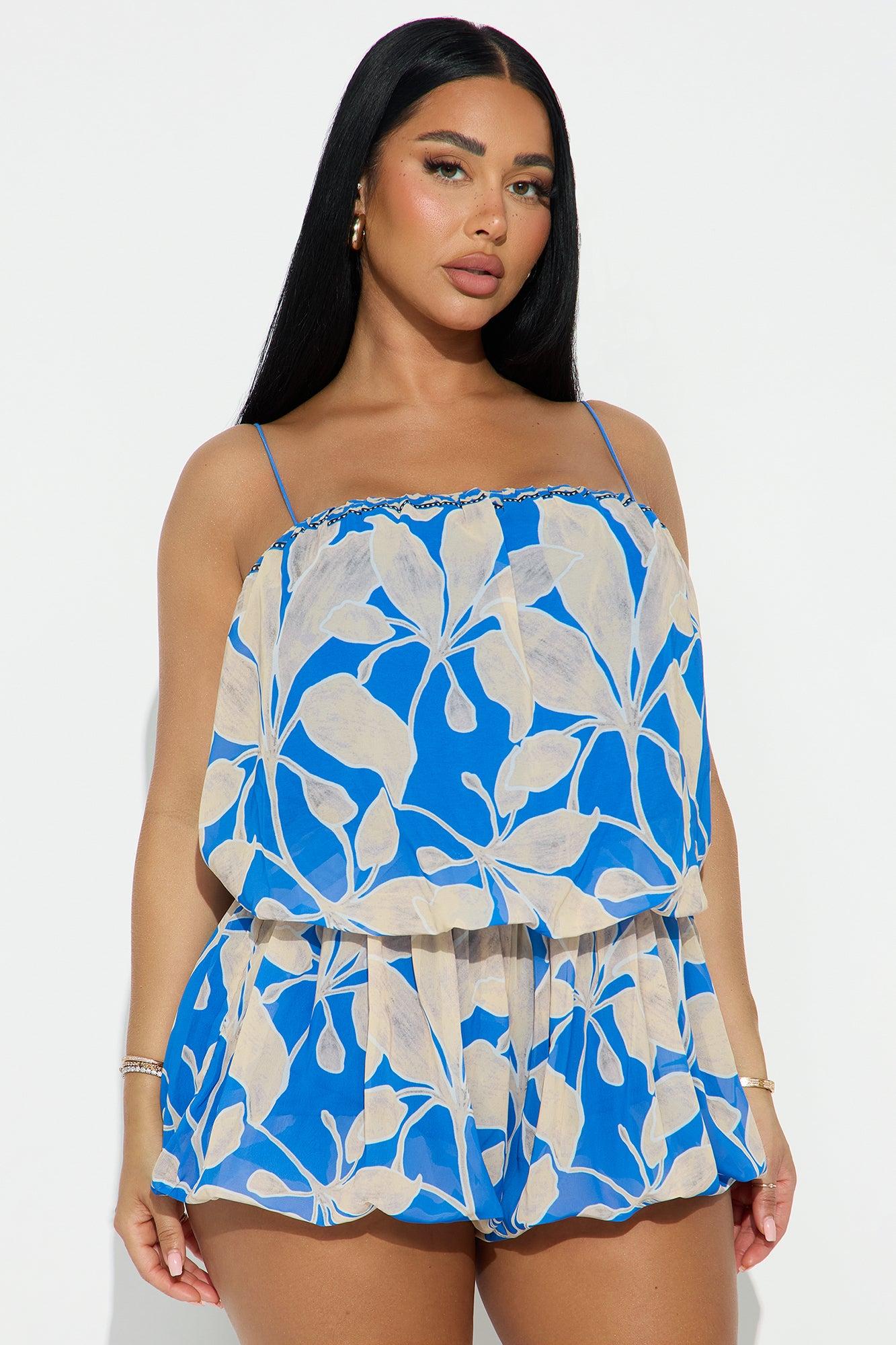 I'll Be Your Tourist Chiffon Romper - Blue/combo Female