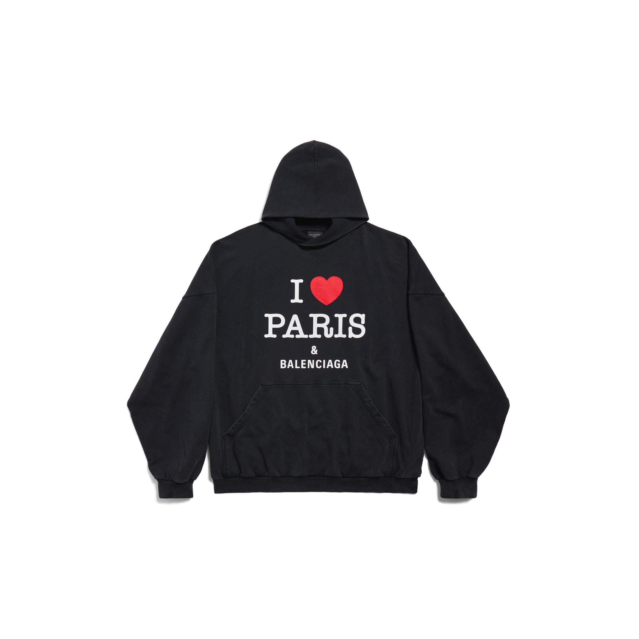I Love Paris & Balenciaga Hoodie Large Fit in Black Faded