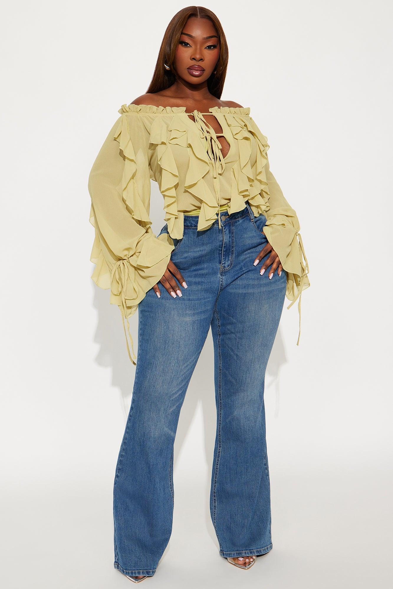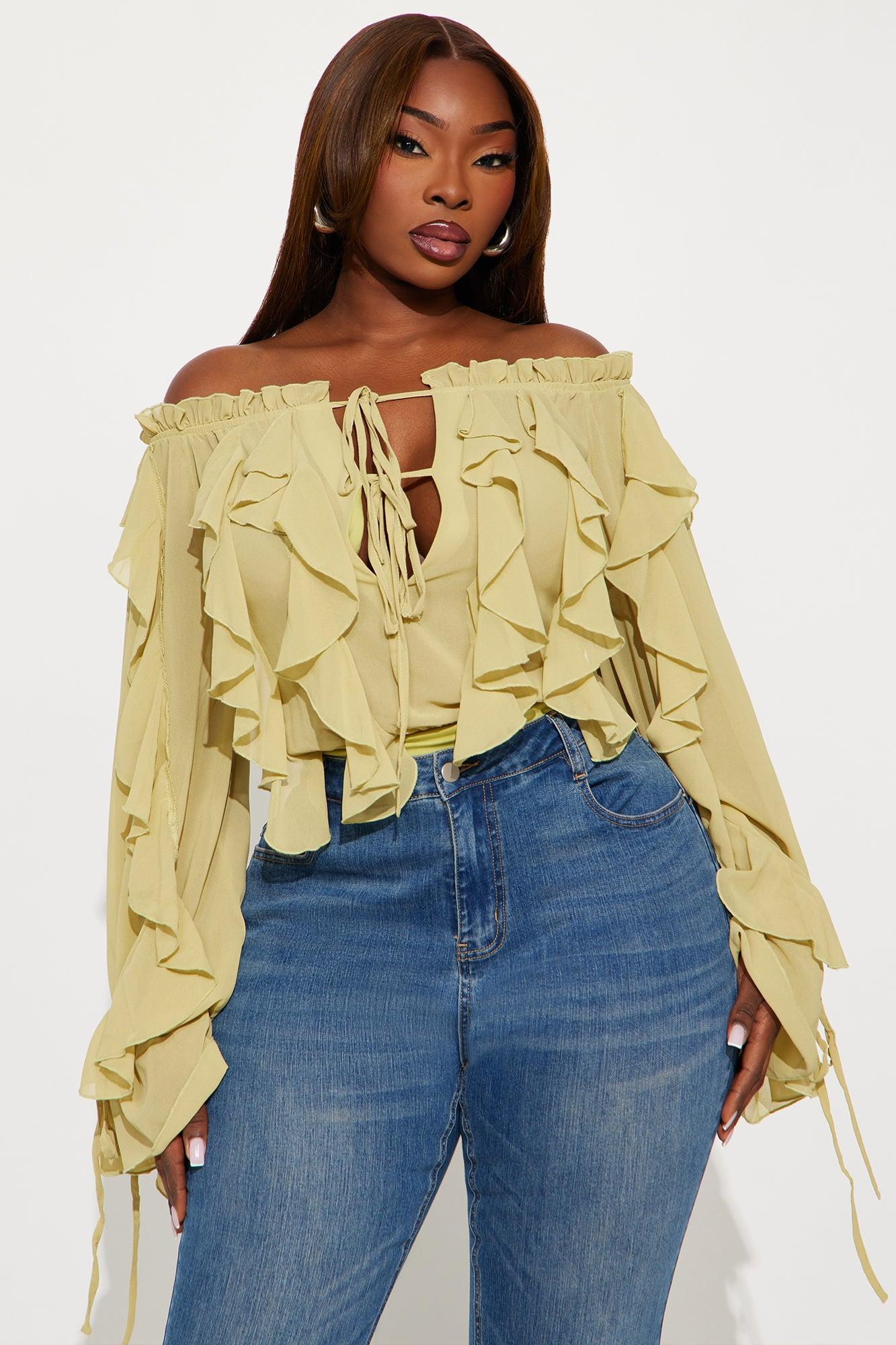 I'm Your Favorite Ruffle Chiffon Bodysuit - Olive Female