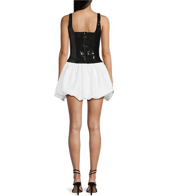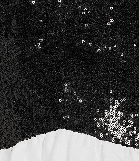 From I.N. San Francisco, this dress features: V-neckline Sleeveless Sequin bodice Bow accents Zip-back closure Bubble skirt hem Polyester/spandex Hand wash/line dry Imported.