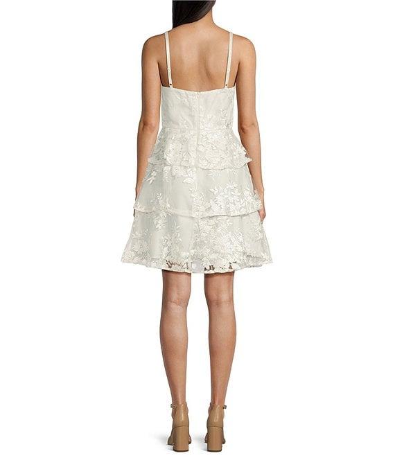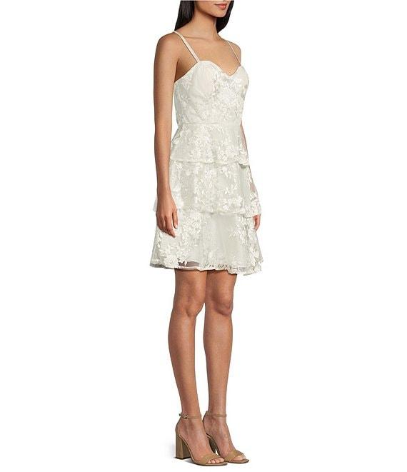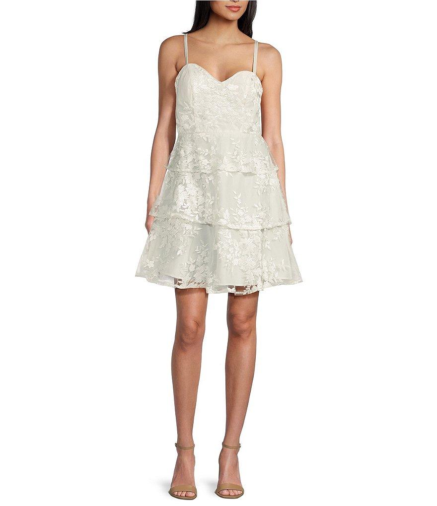 I.N. San Francisco Embroidered Sweetheart Neck Spaghetti Strap Fit & Flare Triple Tiered Dress