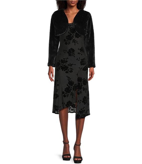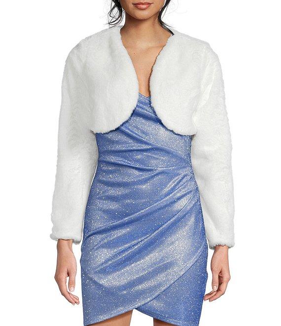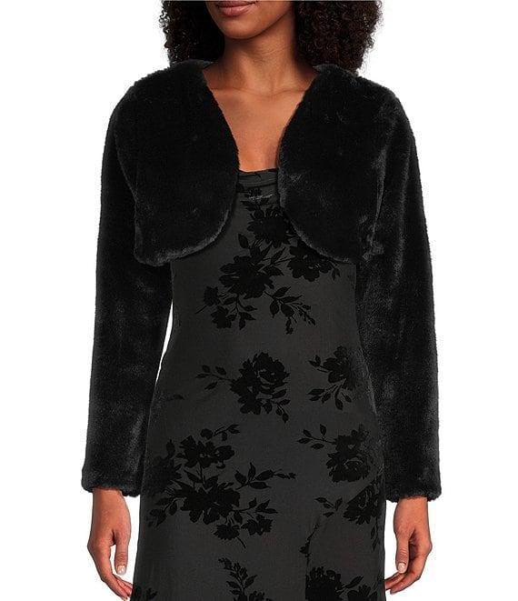 I.N. San Francisco Faux Fur Long Sleeve Cropped Shrug