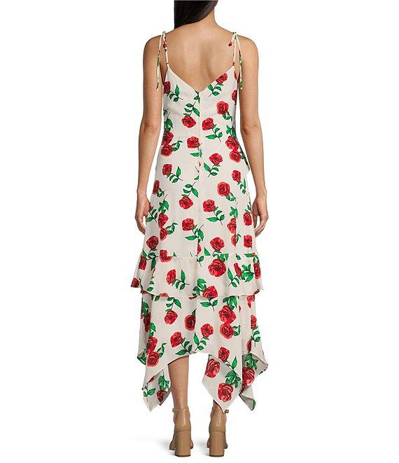 I.N. San Francisco Floral Print V-Neck Spaghetti Strap Ruffled Midi Dress